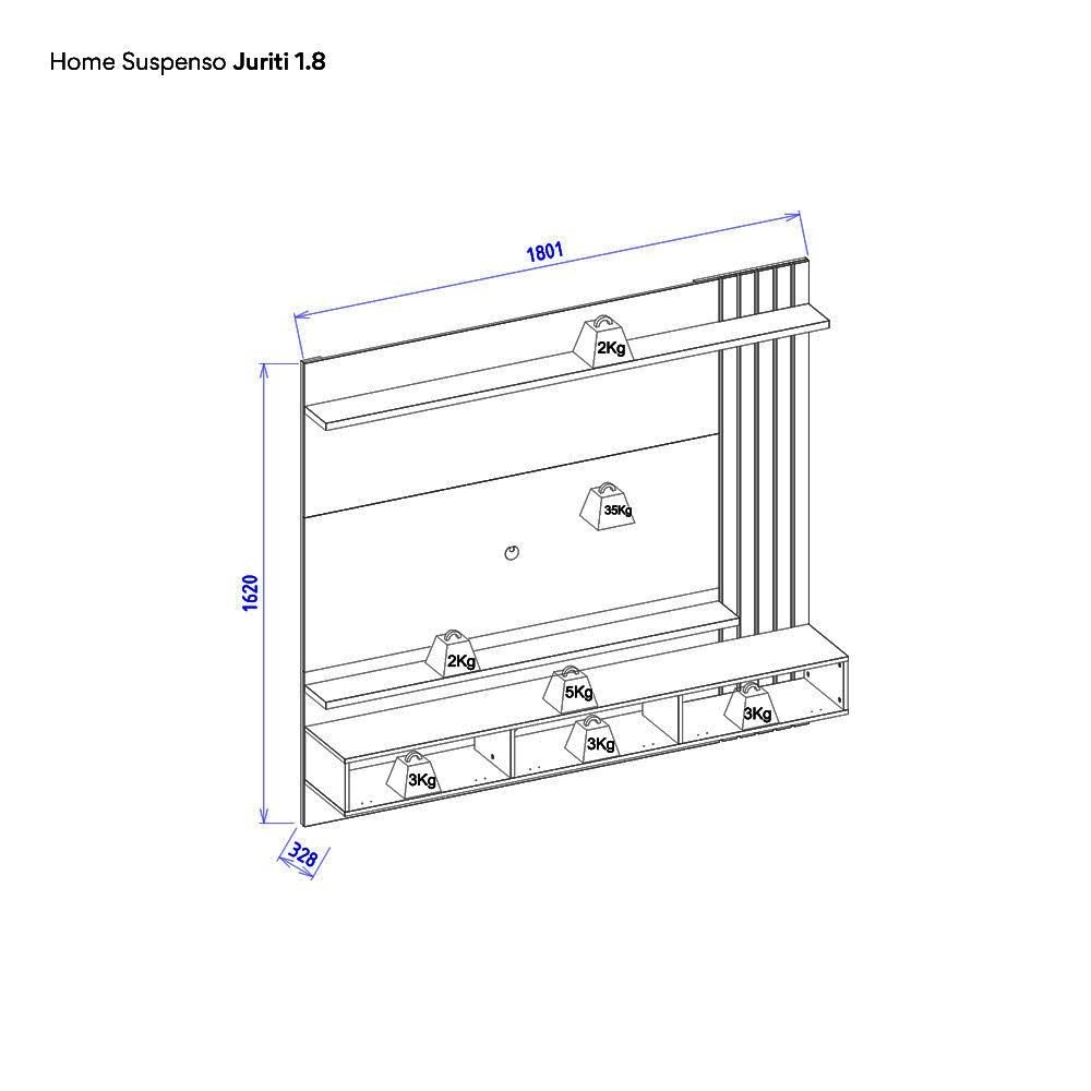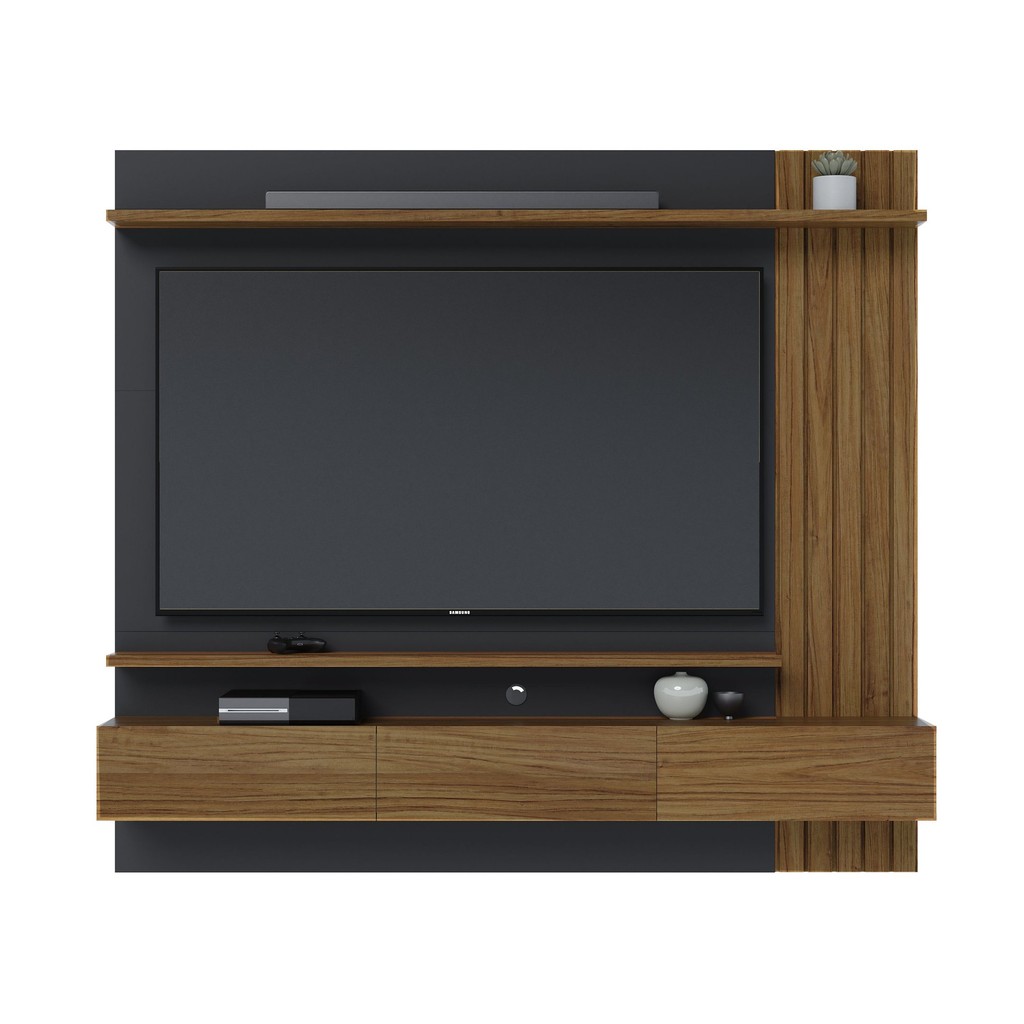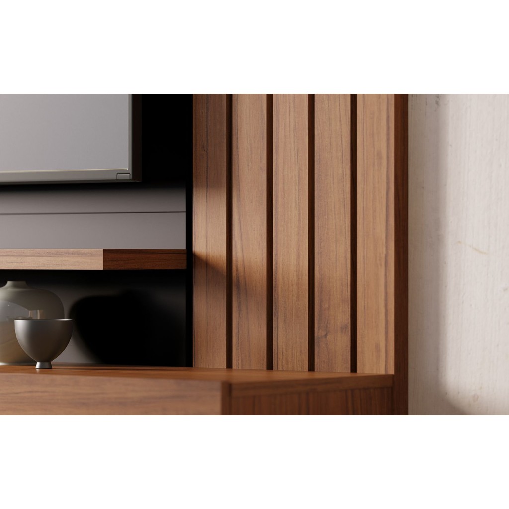Painel para TV até 70 Polegadas 2 Portas Basculantes 2 Prateleiras Juriti Colibri Noce Milano/Preto Fosco