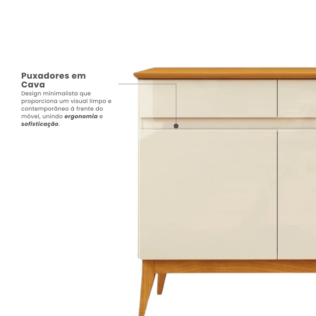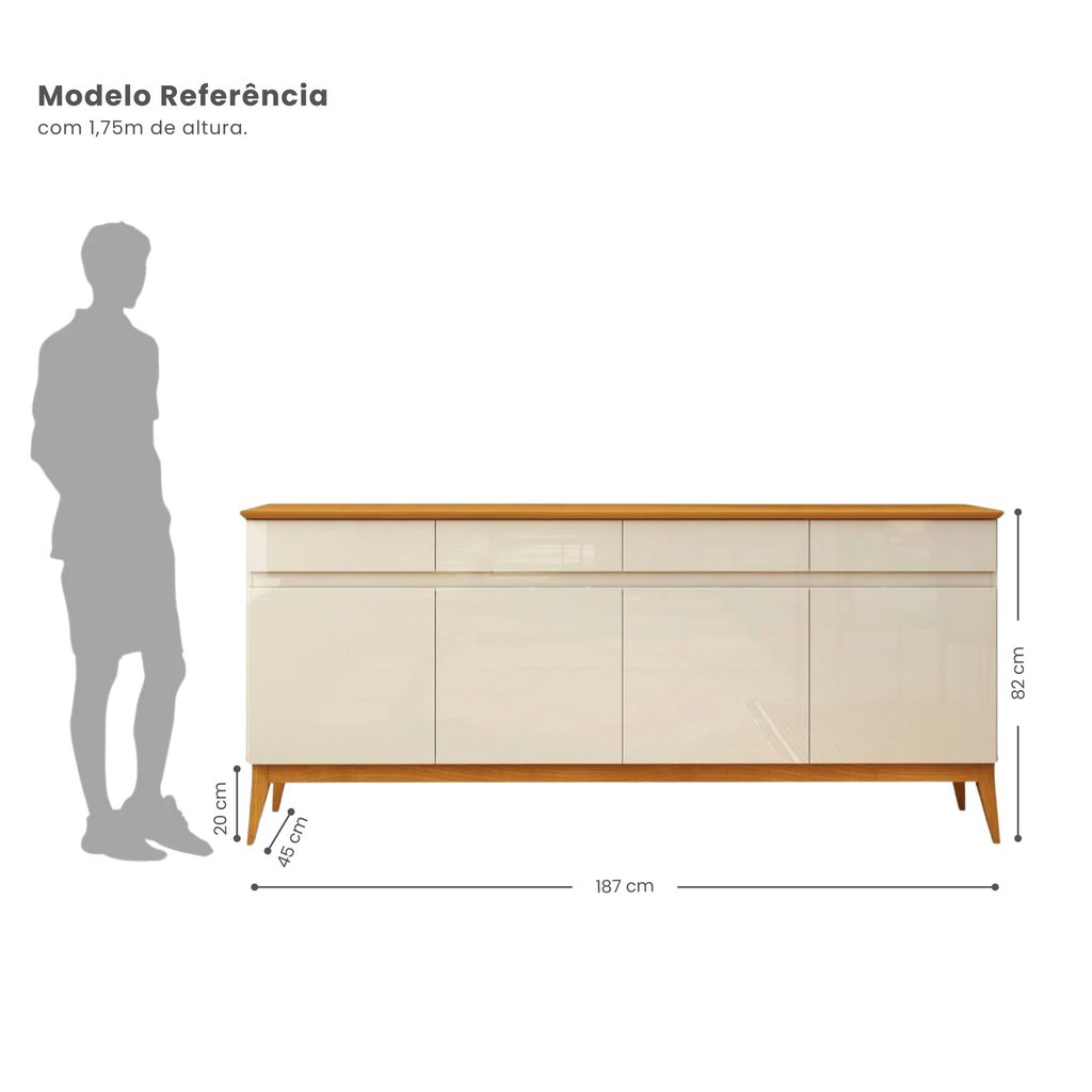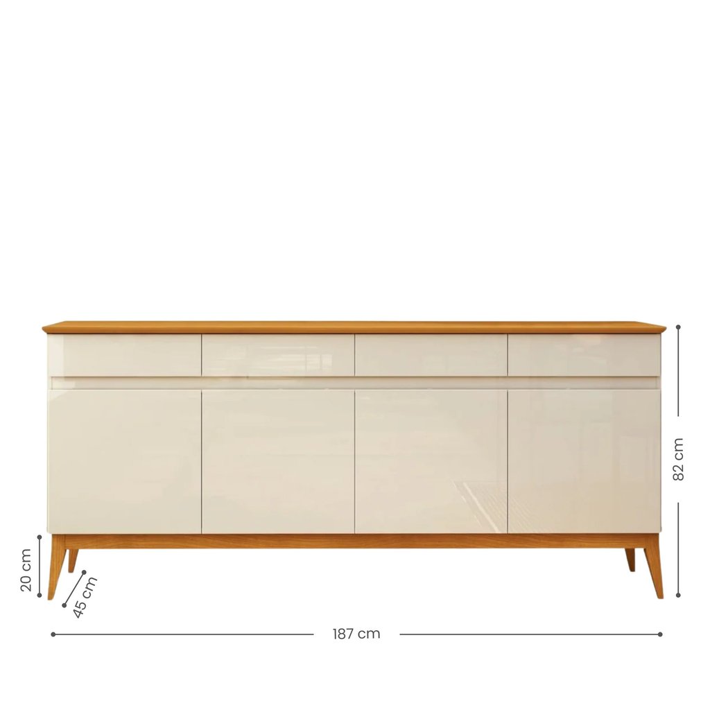 Buffet Aparador 187cm com 4 Portas e 4 Gavetas em MDF Cedro Magnum Premium Off White/Cedro