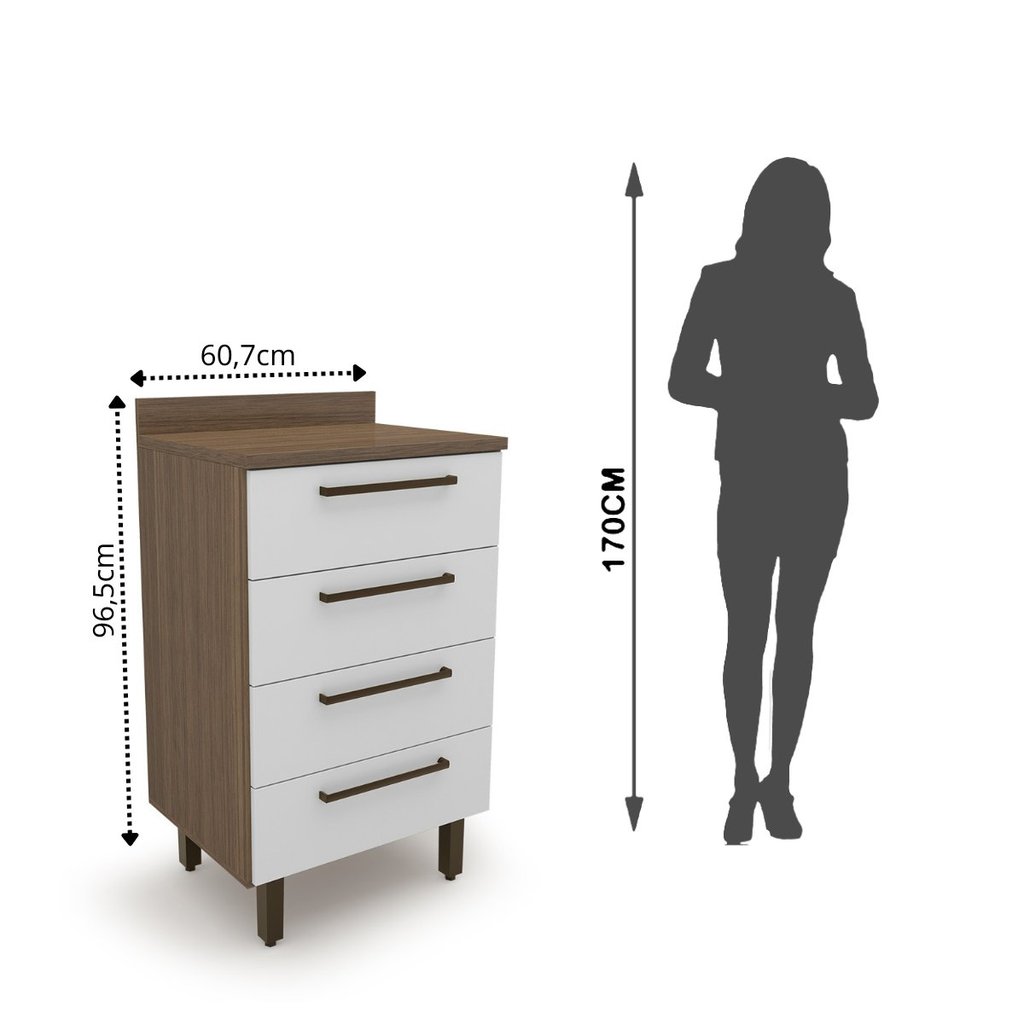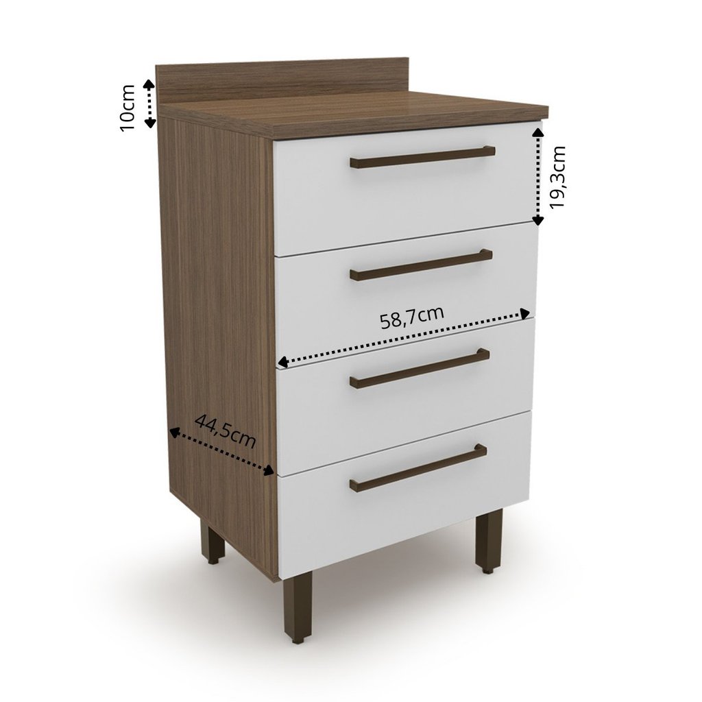 Balcão para Cozinha 4 Gavetas Evolution Plus Tannat/Branco