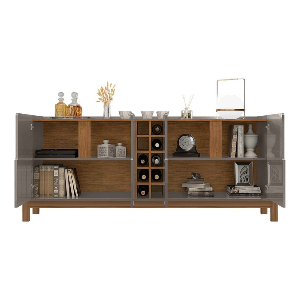 Buffet Aparador 190cm 4 Portas com Adega Lizz Cinza Perola/Cedro