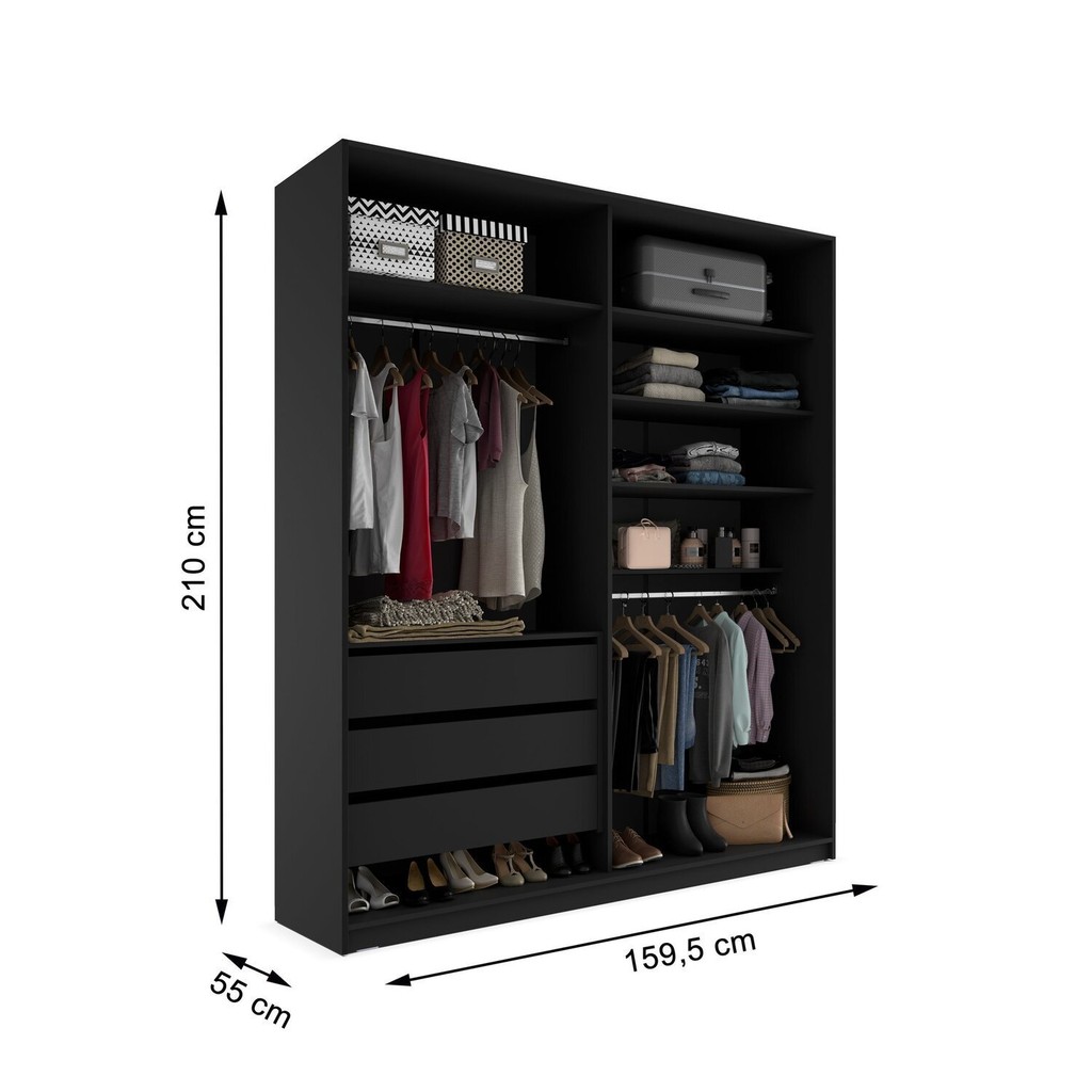 Closet Solteiro 100% Mdf Bp 159,5cm 3 Gavetas Monreale Preto