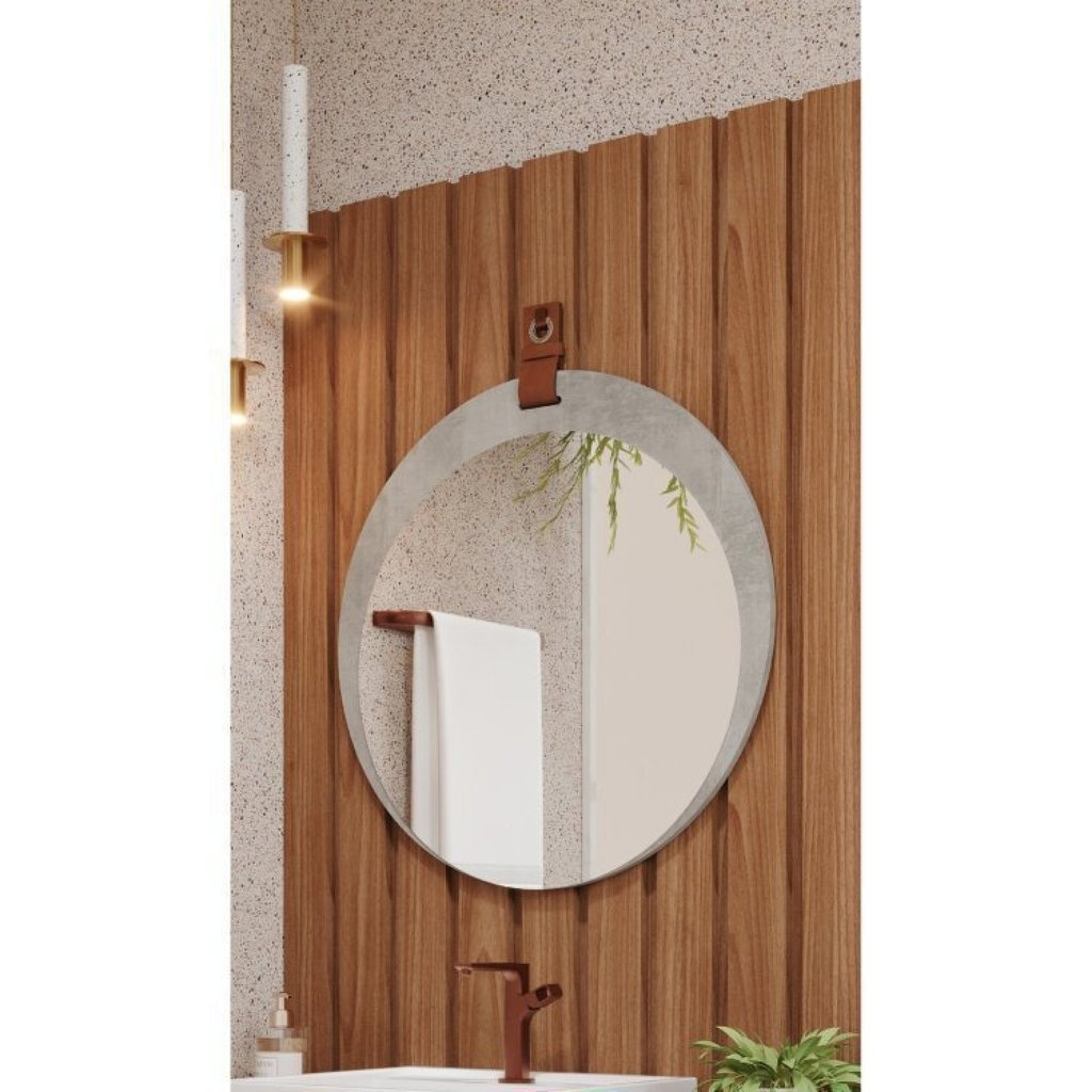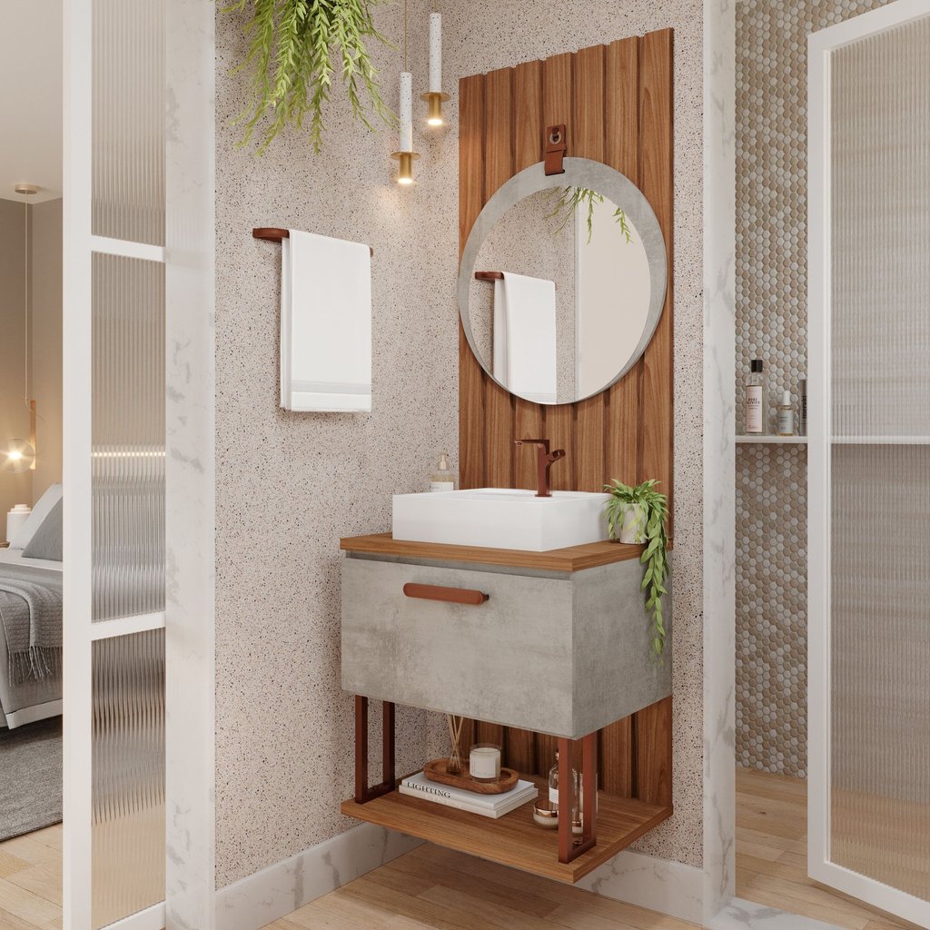 Gabinete Suspenso com Cuba, Painel Ripado e Espelheira 60cm Mari Espresso Móveis Cimento