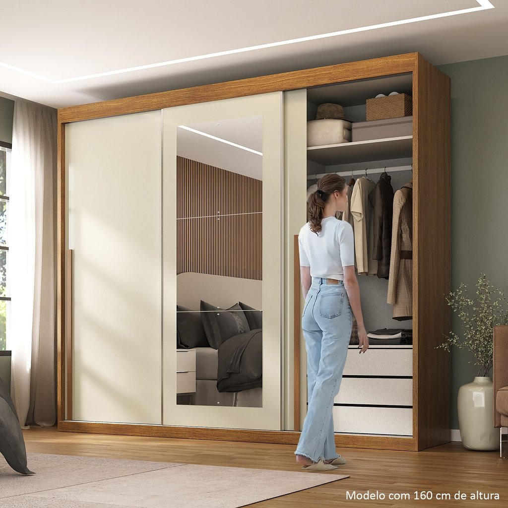 Guarda-roupa Casal 3 Portas de Correr e 6 Gavetas Spazio Cinamomo/Off White