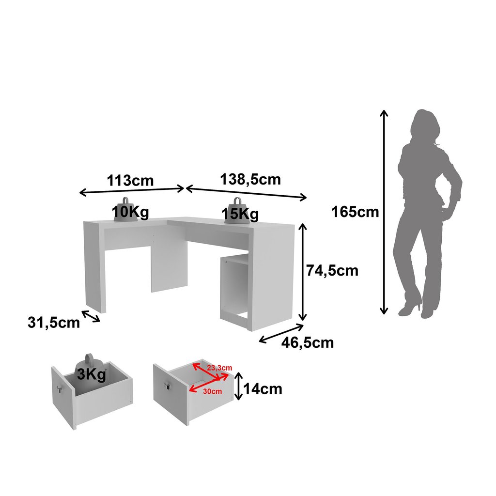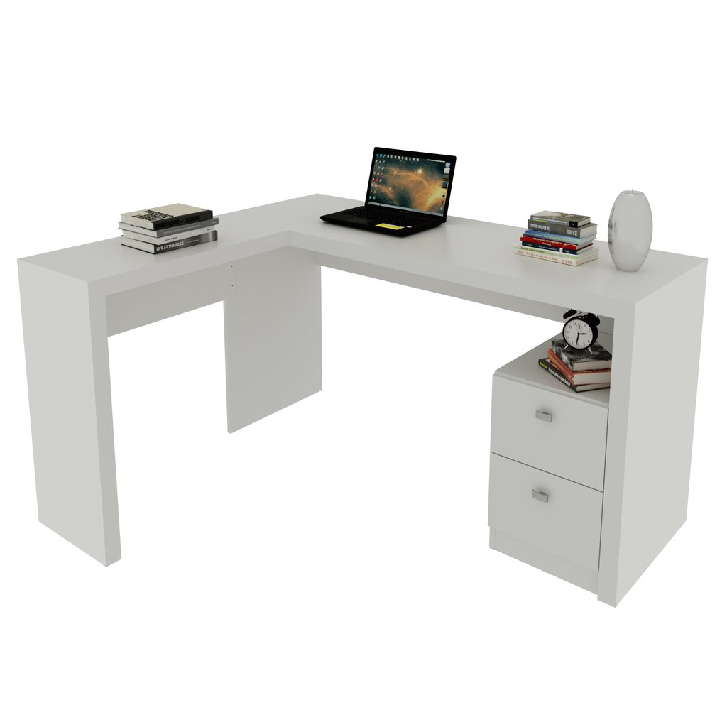 Escrivaninha Mesa Escritório 113x138,5cm em L com 2 Gavetas ME4129 Branco