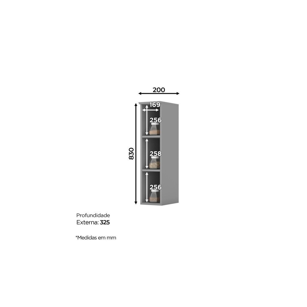 Armário Aéreo 3 Nichos 20cm Emily Espresso Móveis Cinza