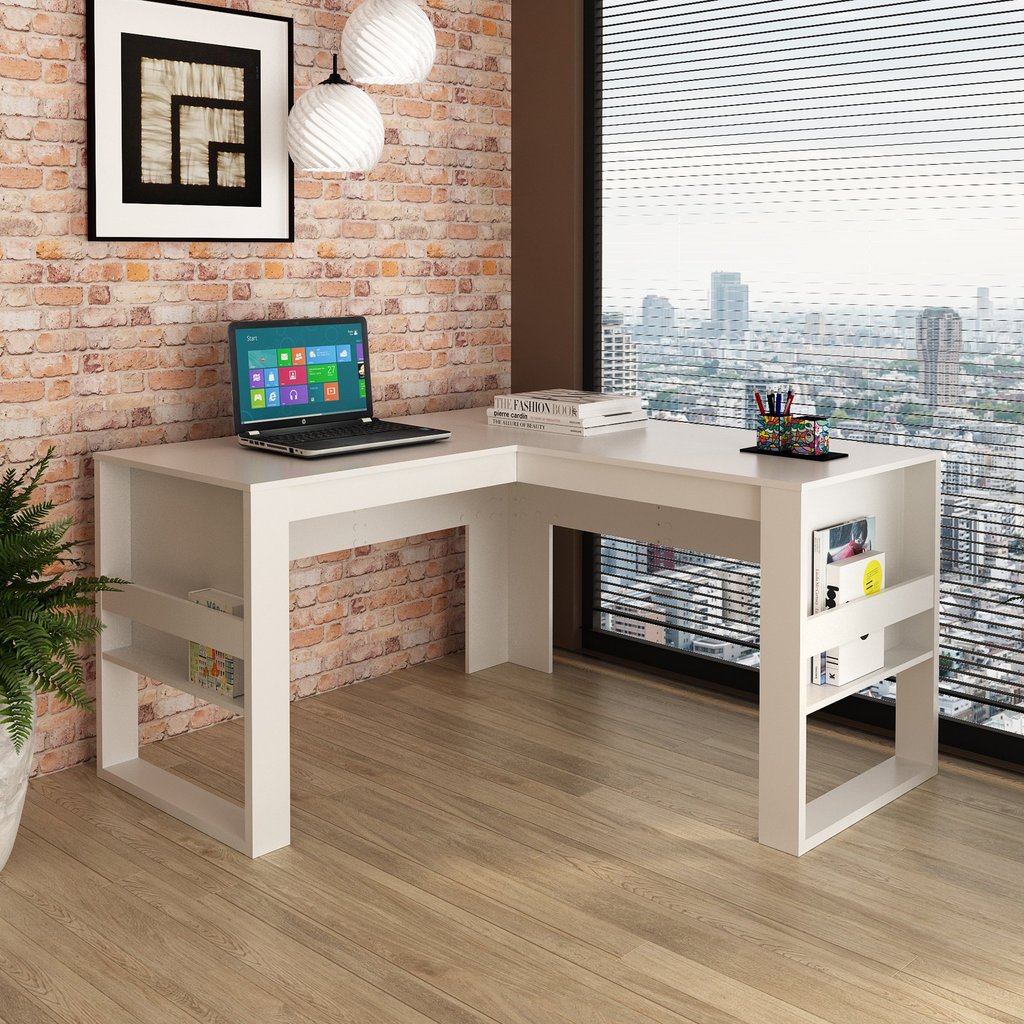 Escrivaninha Mesa Escritório 136cm em L com Detalhe Ripado ME4145 Branco