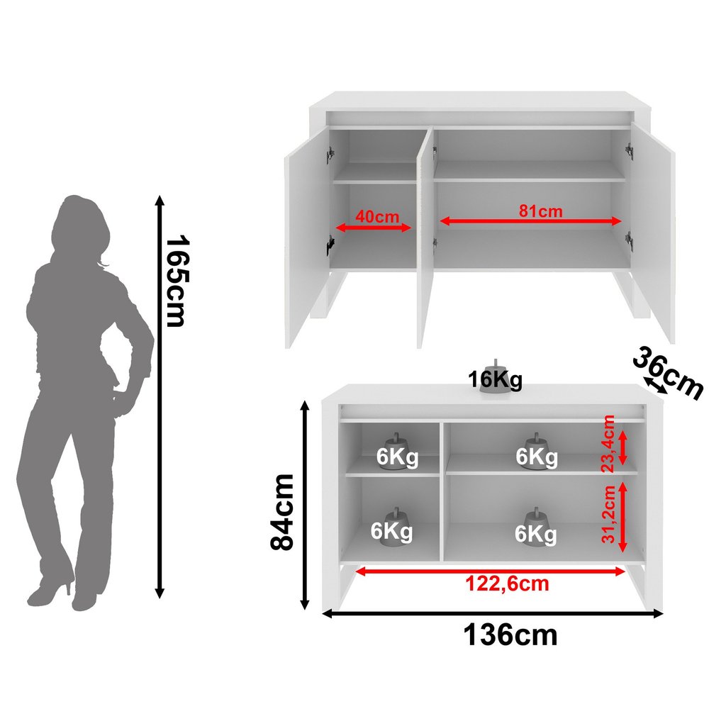 Balcão para Escritório 136cm com 3 Portas e 1 Prateleira ME4147 Branco