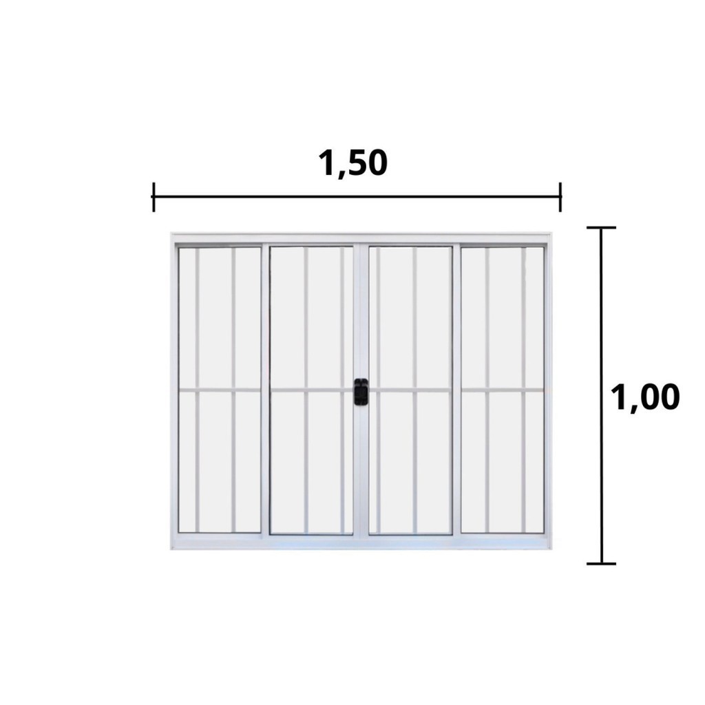 Janela de Alumínio de Correr 100x150cm 4 Folhas Grade Hale Esquadrias Branco