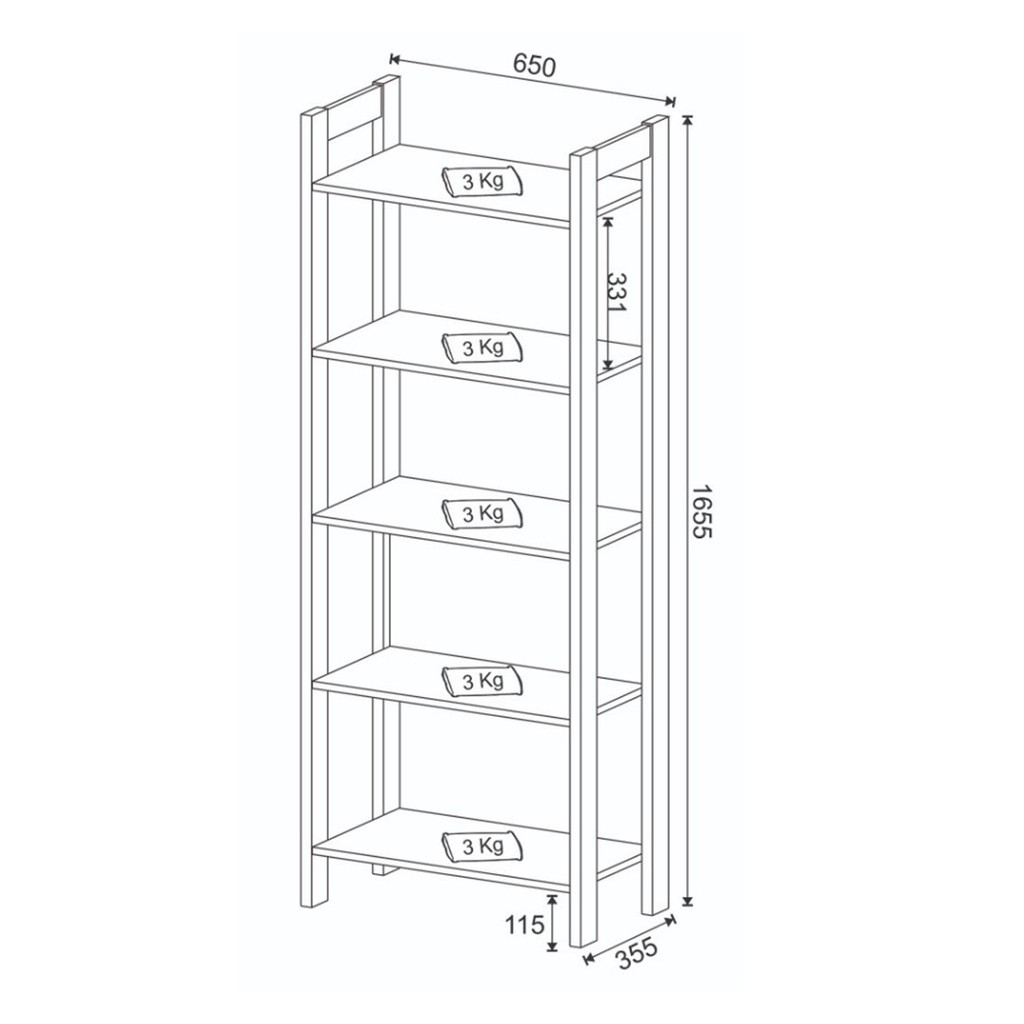 Estante para Livros 5 Prateleiras 165,5cmx65cm AZ Amêndoa/Branco