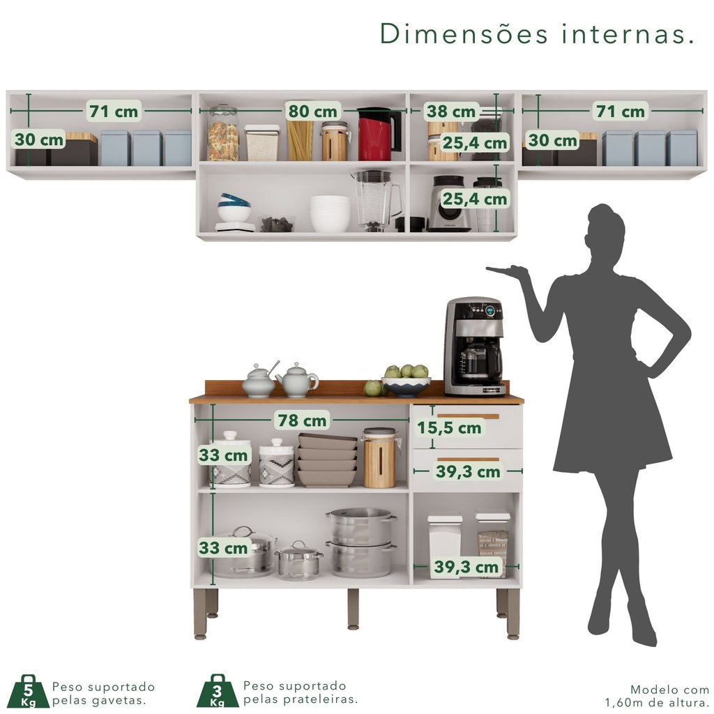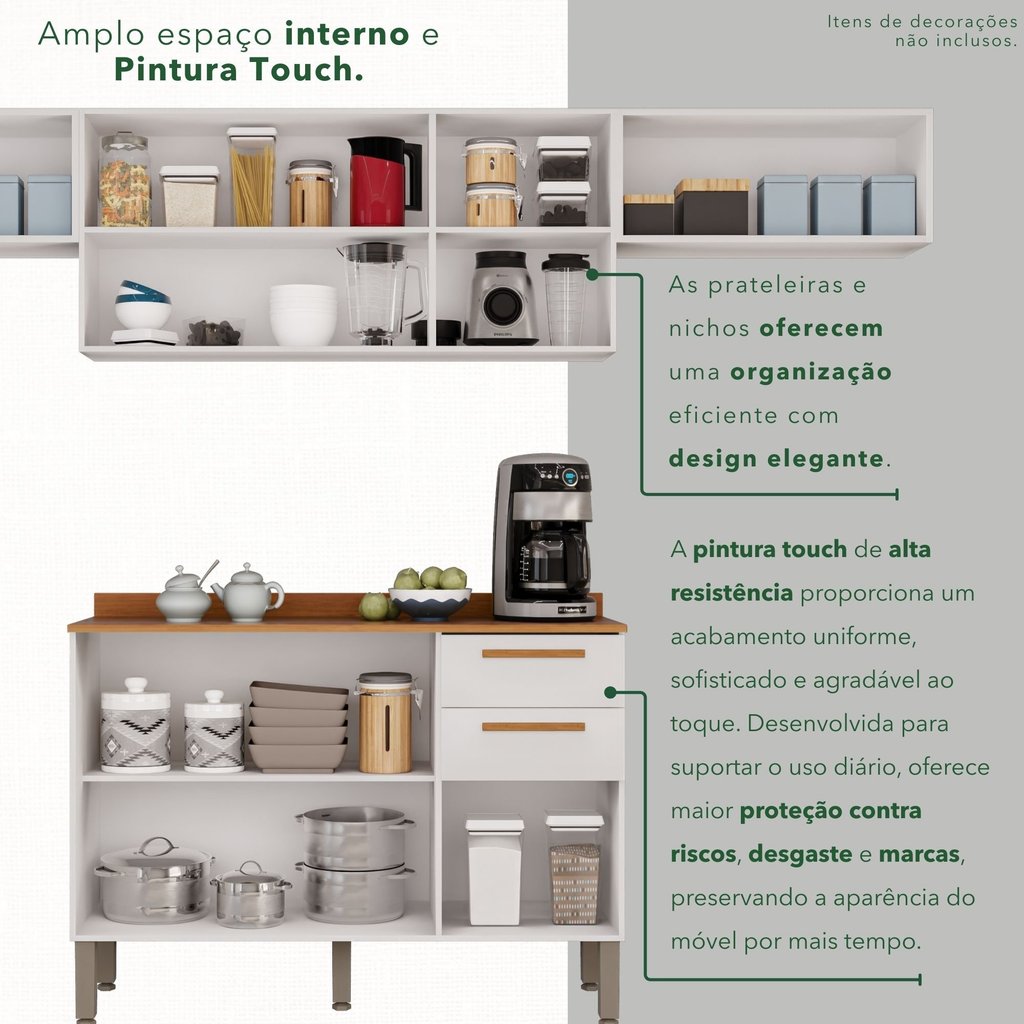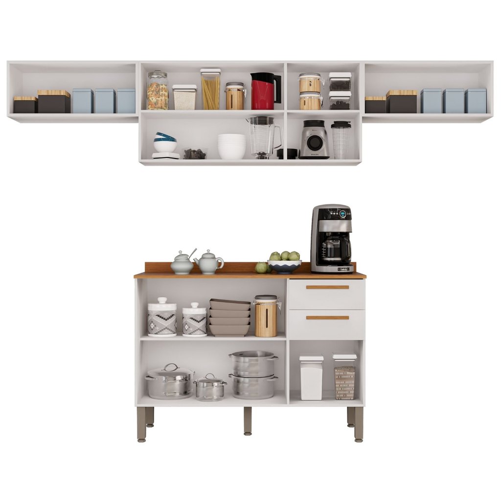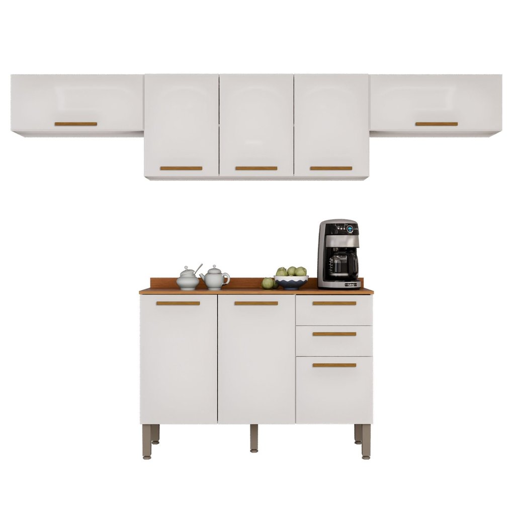 Cozinha Compacta 4 Peças 8 Portas 2 Gavetas Bella Branco/Cinamomo