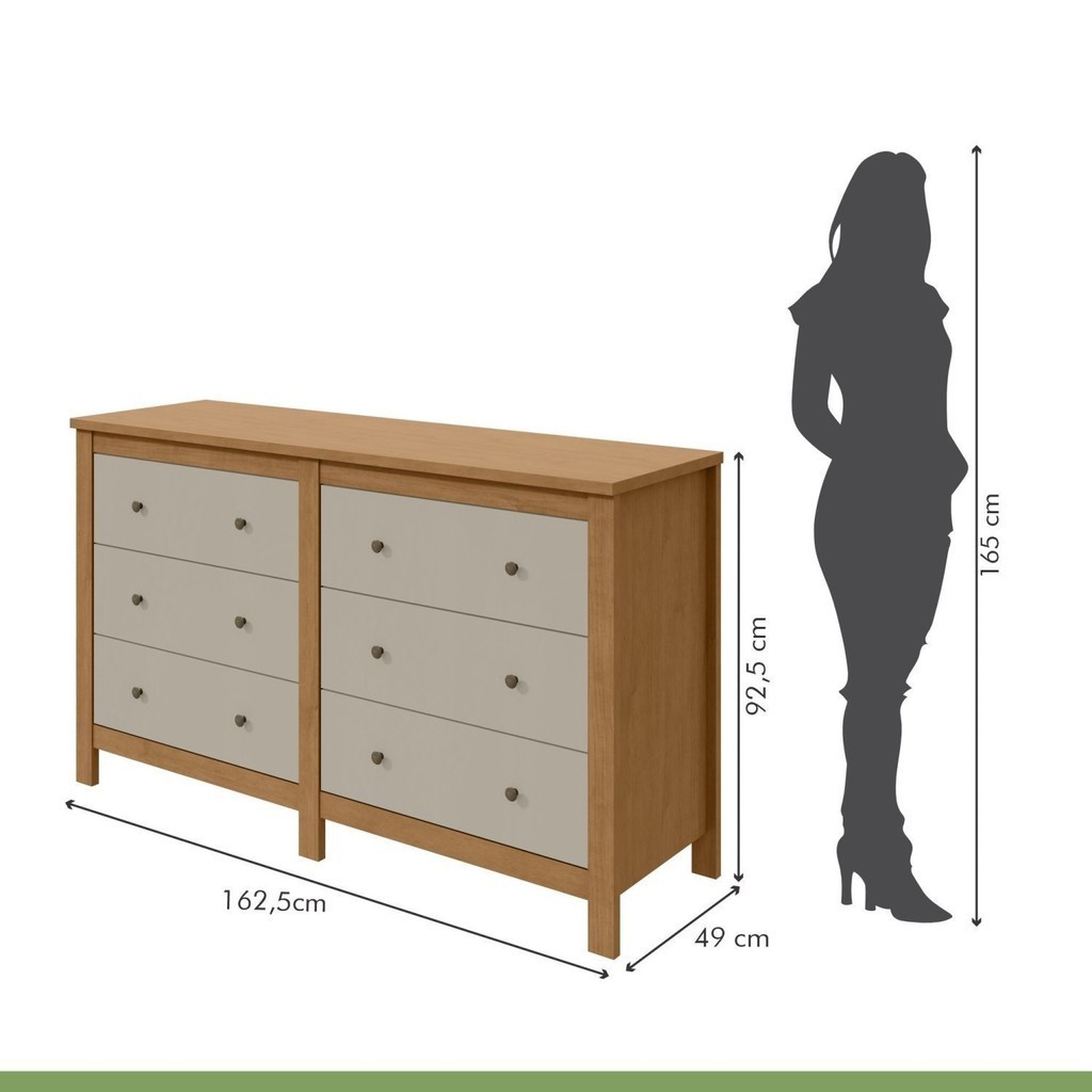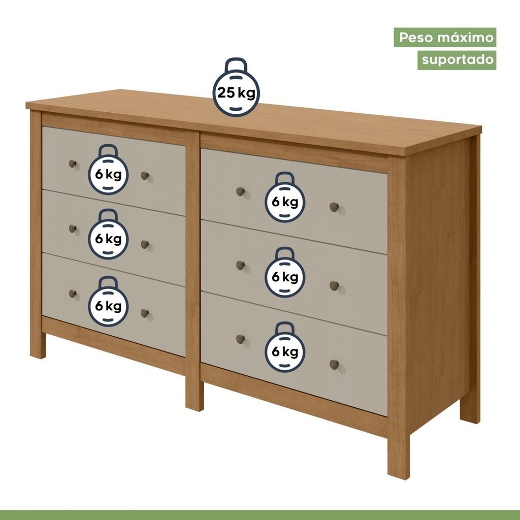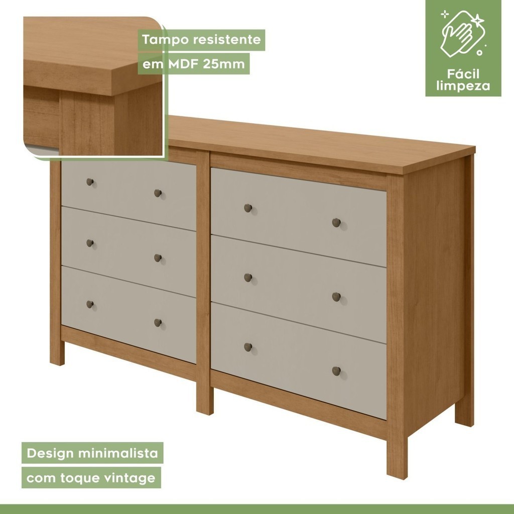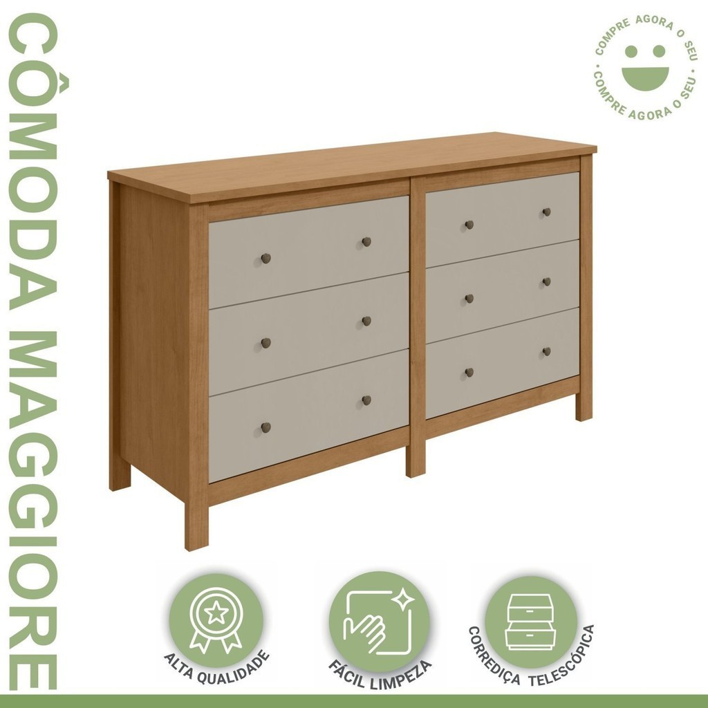 Cômoda 6 Gavetas em Mdp/mdf Maggiore New Amêndoa Clean/Off White