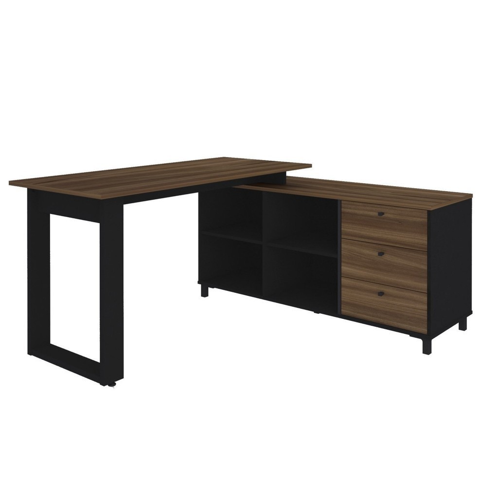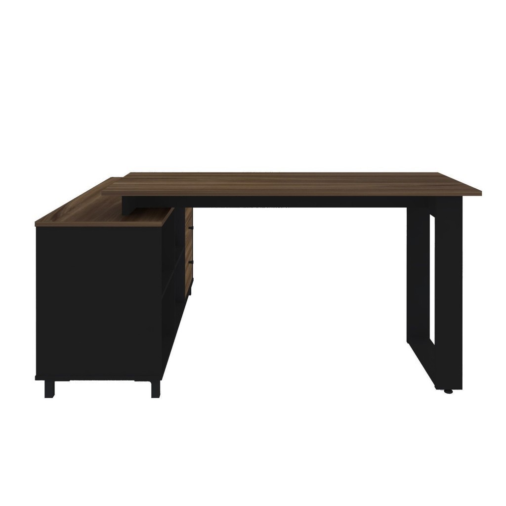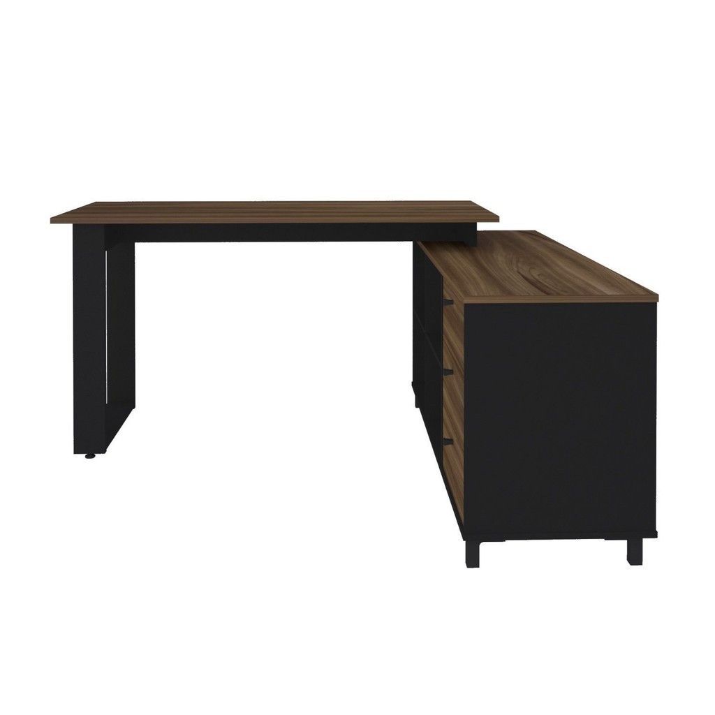 Escrivaninha Mesa Escritório Industrial e Home Office em L 3 Gavetas 4 Nichos Home Office Ipê/Preto