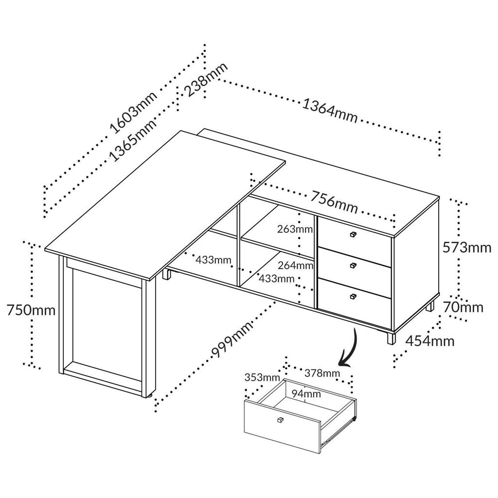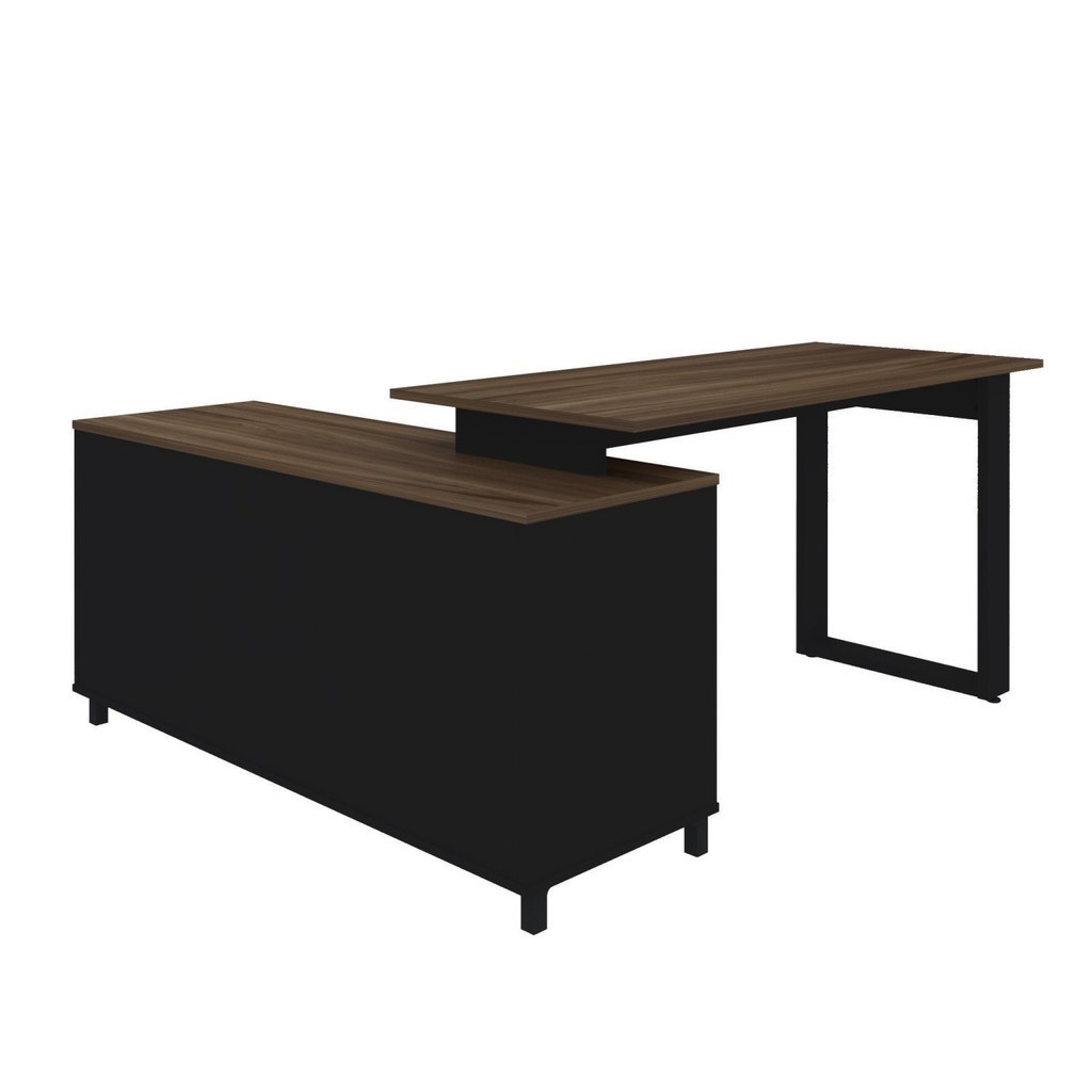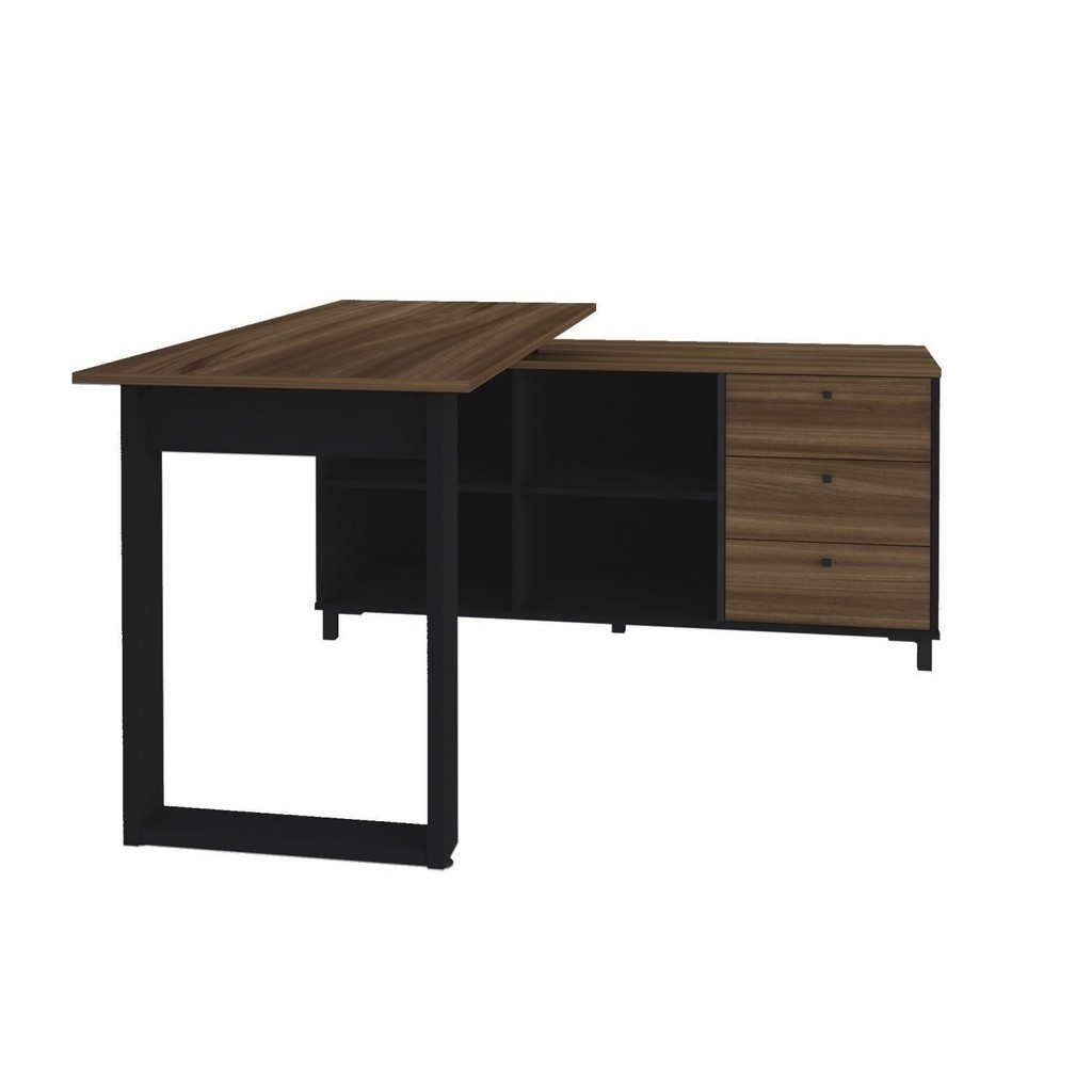 Escrivaninha Mesa Escritório Industrial e Home Office em L 3 Gavetas 4 Nichos Home Office Ipê/Preto