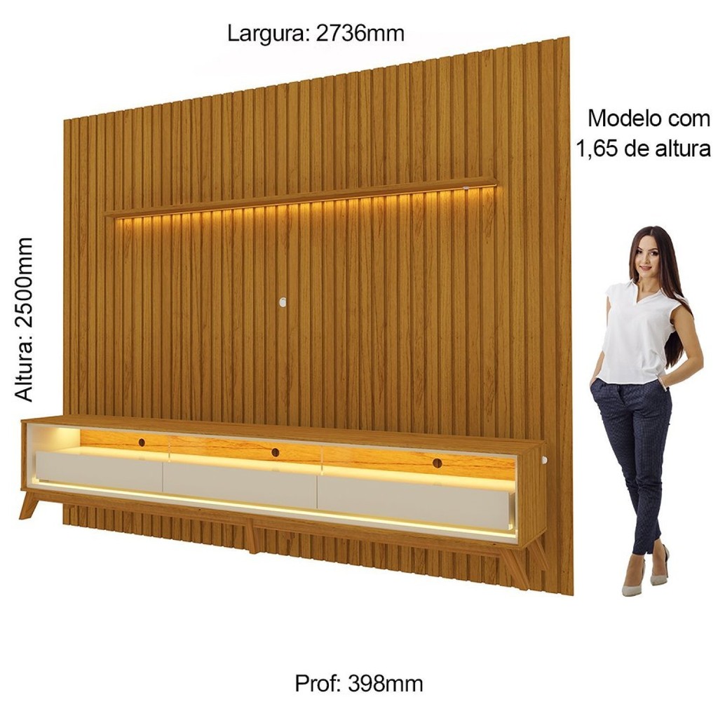 Rack com Painel Ripado para Tv até 90 Polegadas Led 3 Gavetas com Pés em Madeira Maciça 260cm Nobre/requinte 100% MDF