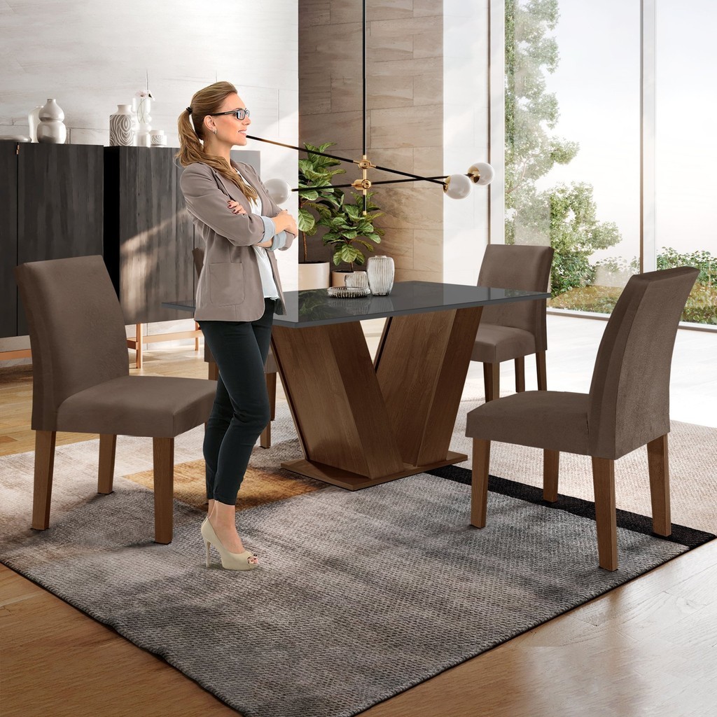 Conjunto Sala de Jantar Mesa 120x80cm Tampo Mdf/vidro com 4 Cadeiras Espanha Yescasa Chocolate/Grafite/Marrom