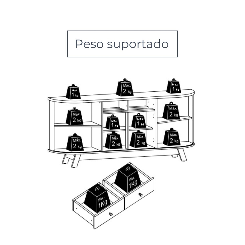 Aparador Buffet para Sala de Jantar 2 Portas Flexíveis Curvo 2 Gavetas Monaco Calacata/Offwhite
