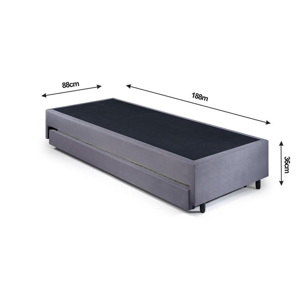 Base Box B&G Solteiro 88x188x36cm com Cama Auxiliar 78x177x12cm Cinza