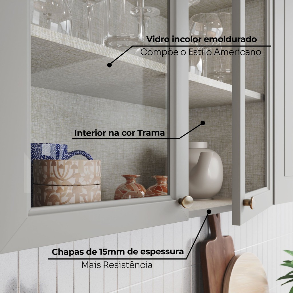 Armário Aéreo 2 Portas 80cm Emily Espresso Móveis Cinza