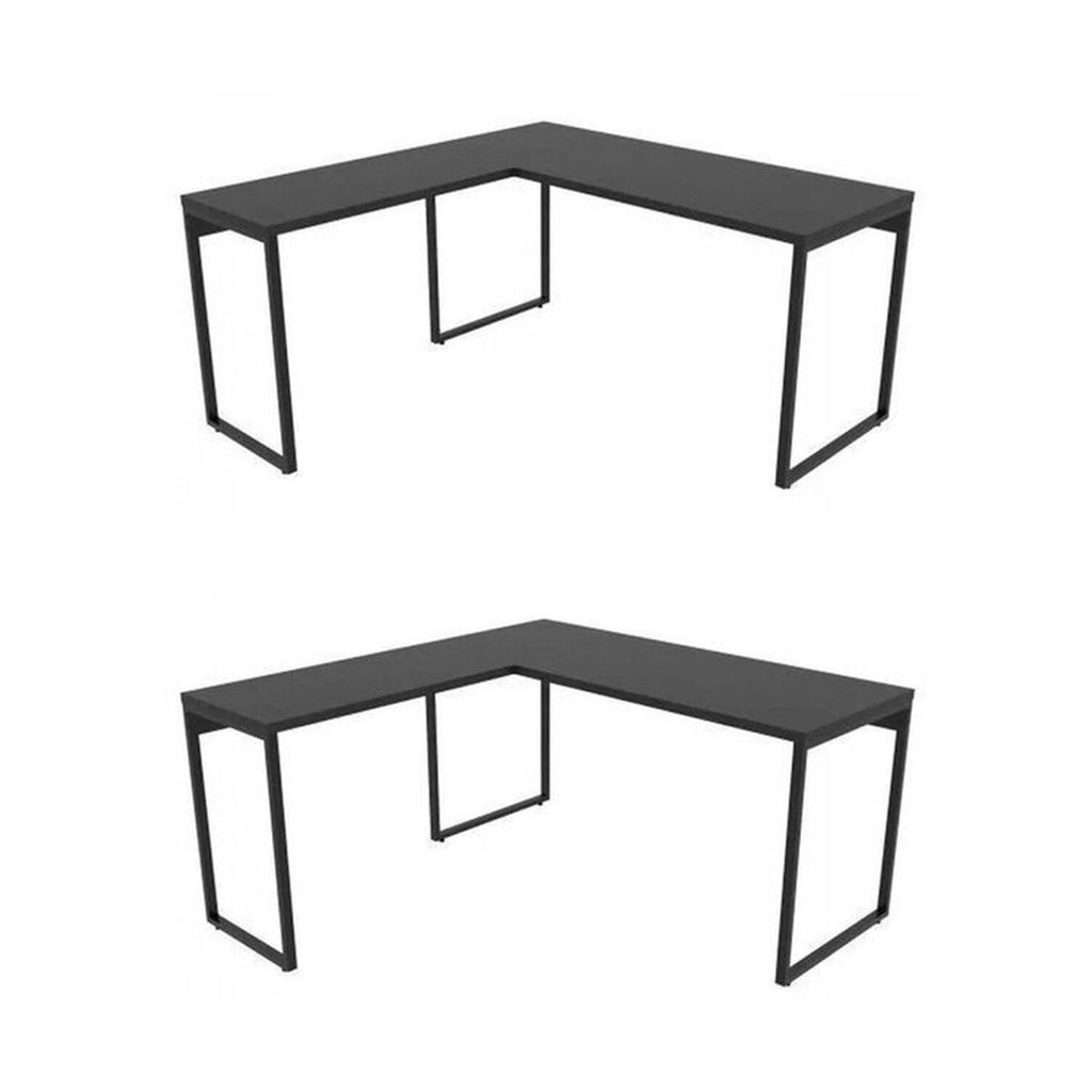 Kit 2 Mesas de Escritório em L Estilo Industrial 1,50mx1,50m Kuadra Preto Onix