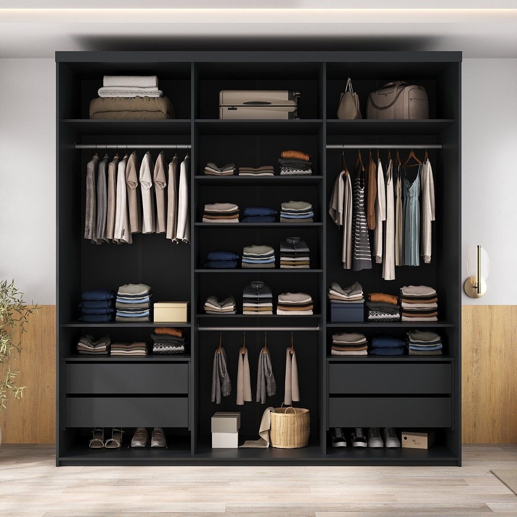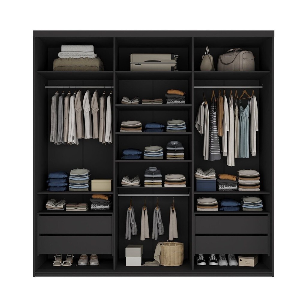 Closet Casal 100% Mdf 208cm 4 Gavetas Moutier Preto