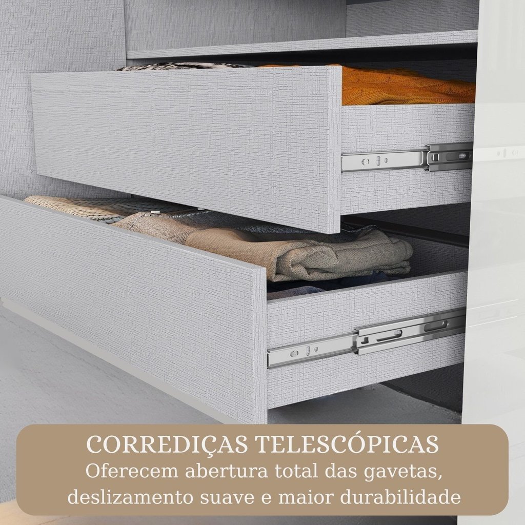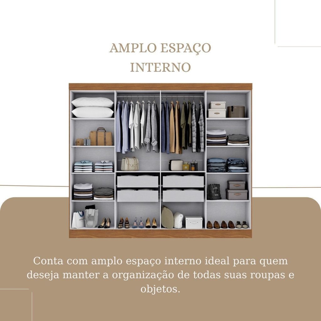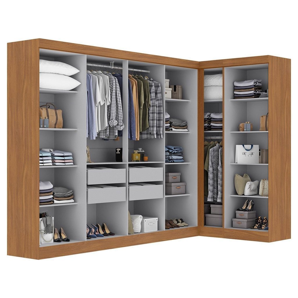 Guarda-roupa Modulado de Canto 11 Portas e 4 Gavetas Paris Cinamomo/Off White