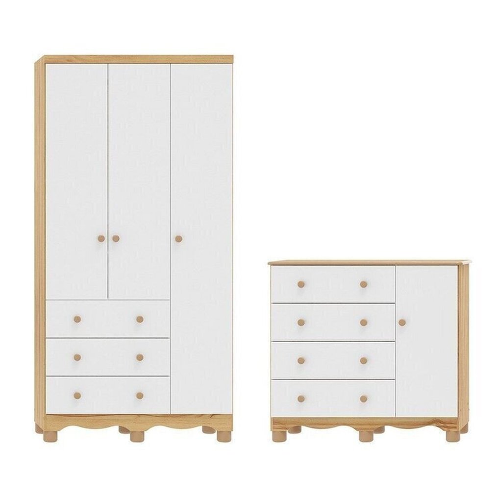 Quarto Infantil com Guarda-roupa 3 Portas e Cômoda 1 Porta 100% Mdf Mimo Espresso Móveis Branco Brilho/Amêndoa