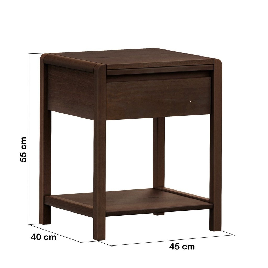 Mesa de Cabeceira 1 Gaveta de Madeira Maciça Modena Capuccino