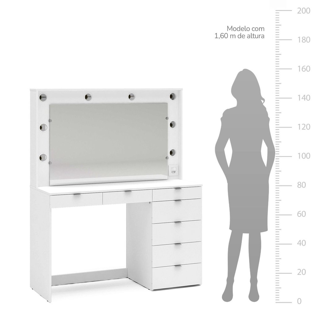Penteadeira Camarim com Espelho 7 Gavetas e Tomada Diamante Espresso Móveis Branco