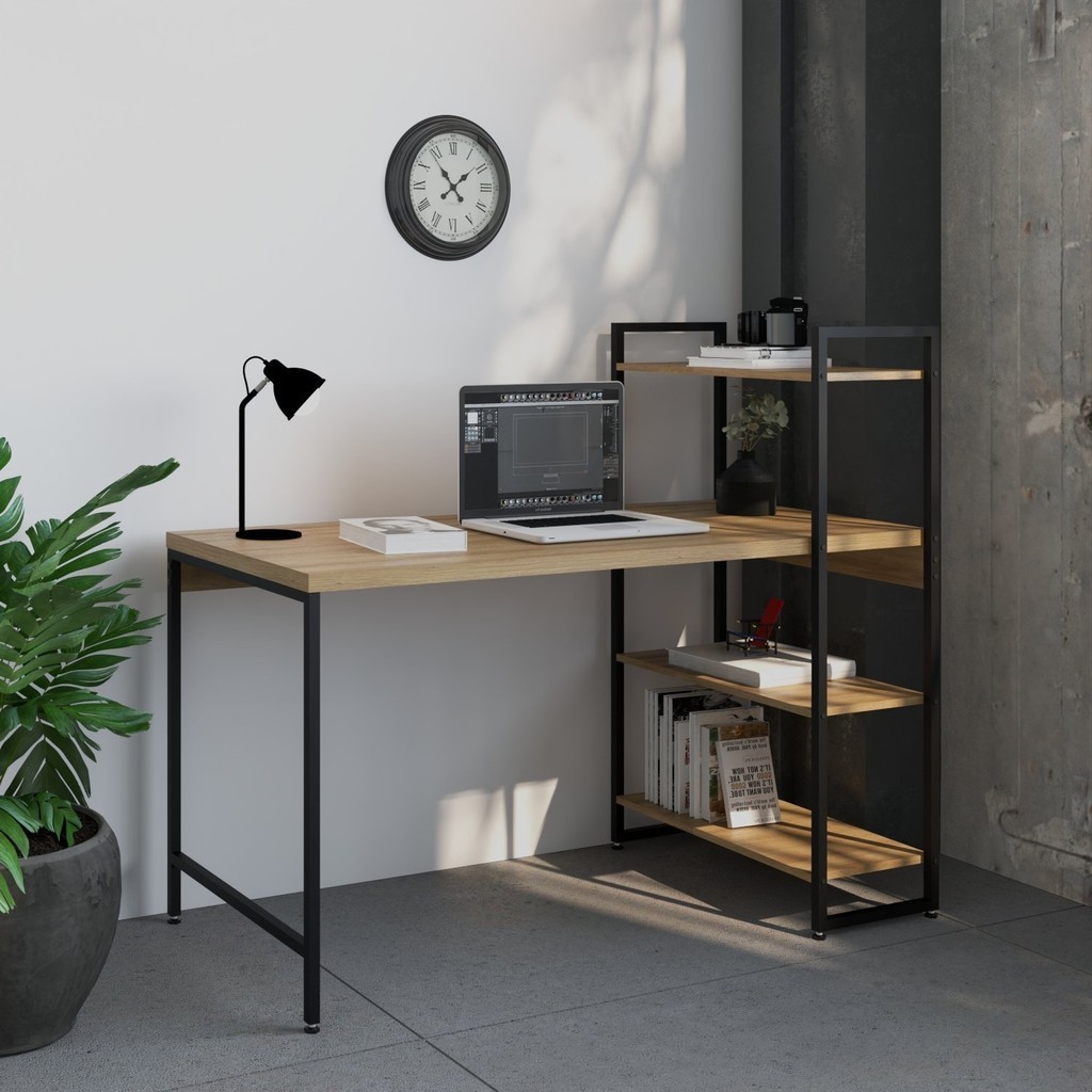 Escrivaninha Mesa Escritório com Estante 3 Prateleiras Estilo Industrial 135cm Active Yescasa Lâmina Mel
