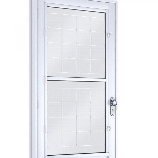 Porta de Aço Postigo 215x90cm com Grade Quadrada e Vidro Mini Boreal Lucasa