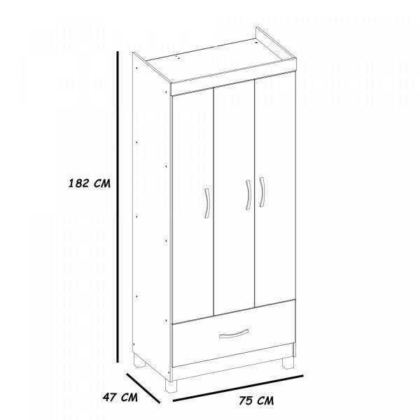 Guarda-Roupa Solteiro 3 Portas 1 Gaveta Prince Branco