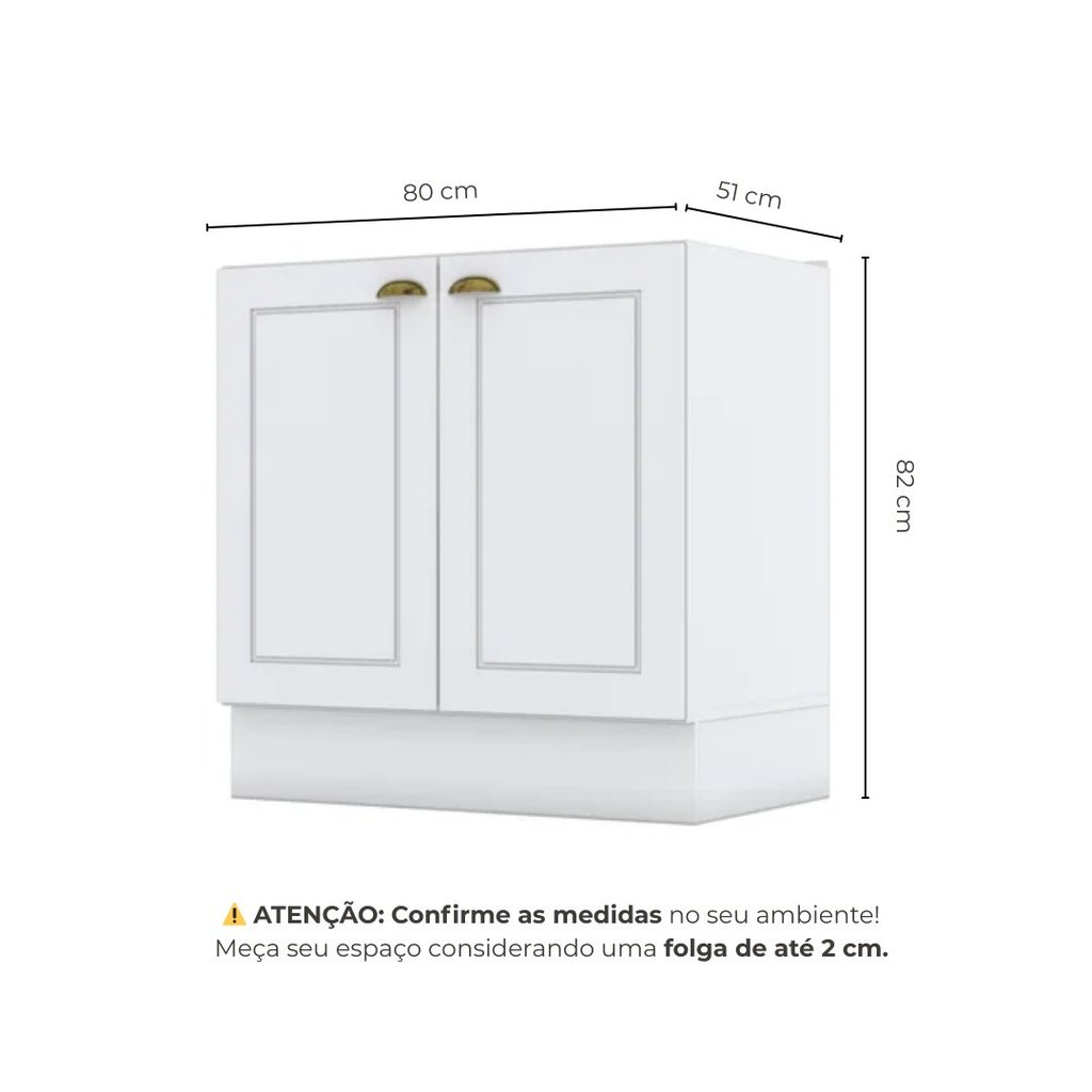 Módulo Balcão de Cozinha 2 Portas 80cm Branco Emily Espresso Móveis Branco HP