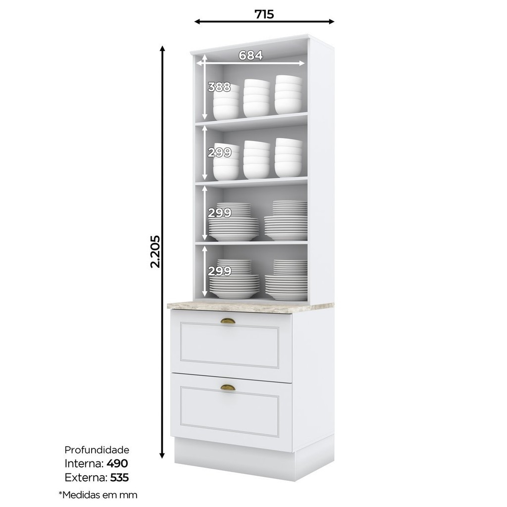 Paneleiro 2 Portas 2 Gavetas Emily Branco HP