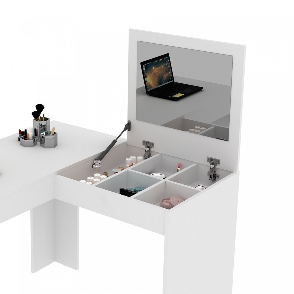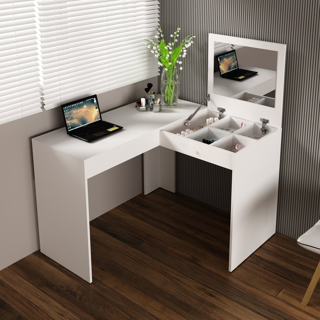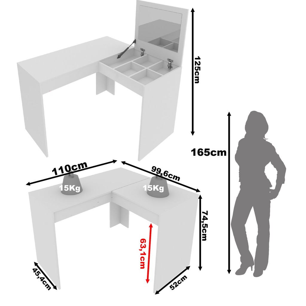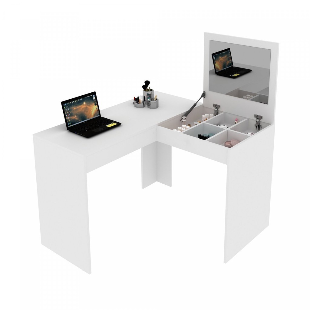 Escrivaninha Mesa Escritório Penteadeira em L com Espelho 110cm Espresso Móveis Branco