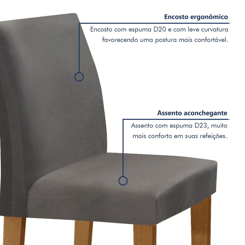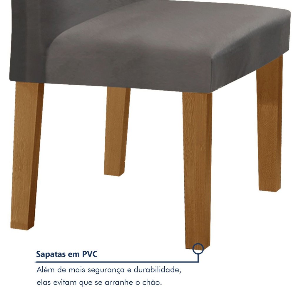 Conjunto Sala de Jantar Mesa 120x80cm Tampo Mdf/vidro com 4 Cadeiras Espanha Yescasa Ypê/Grafite/Suede Cinza