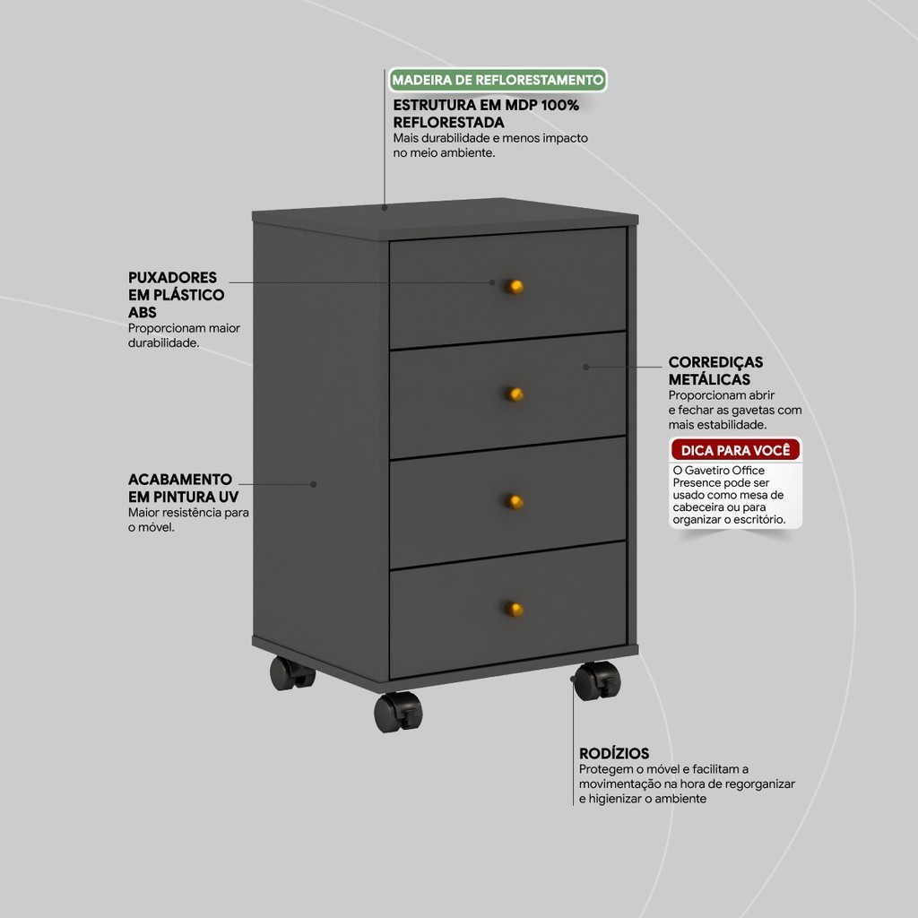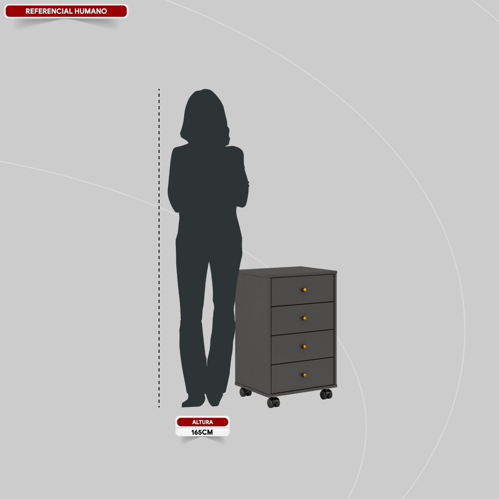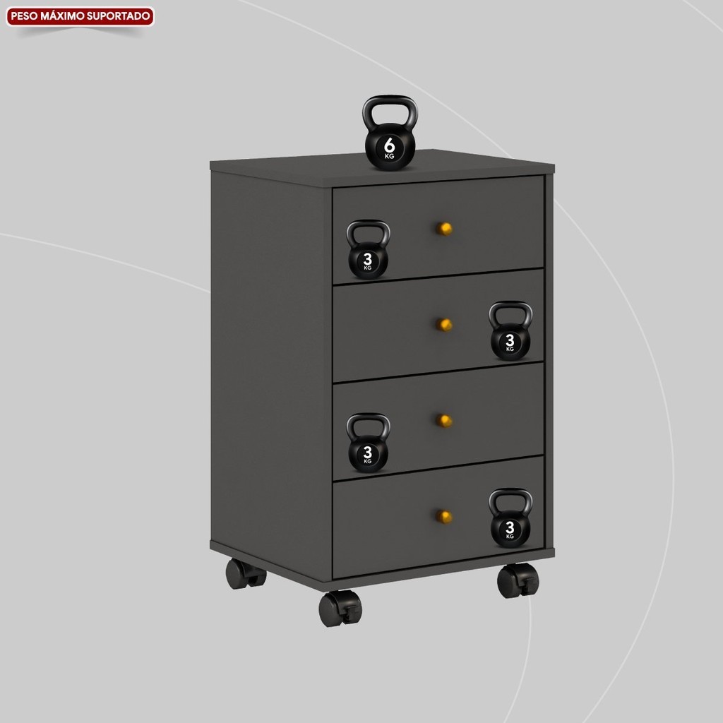 Gaveteiro 4 Gavetas Presence Amêndola/Grafito