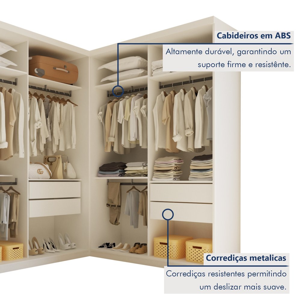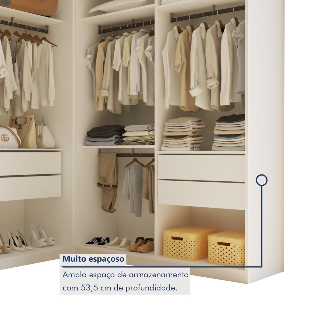 Conjunto Closet Casal sem Portas 2 Módulos 6 Gavetas França Branco