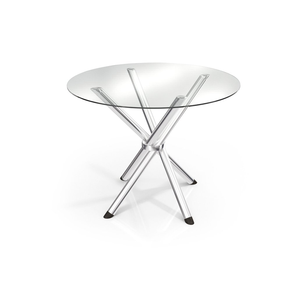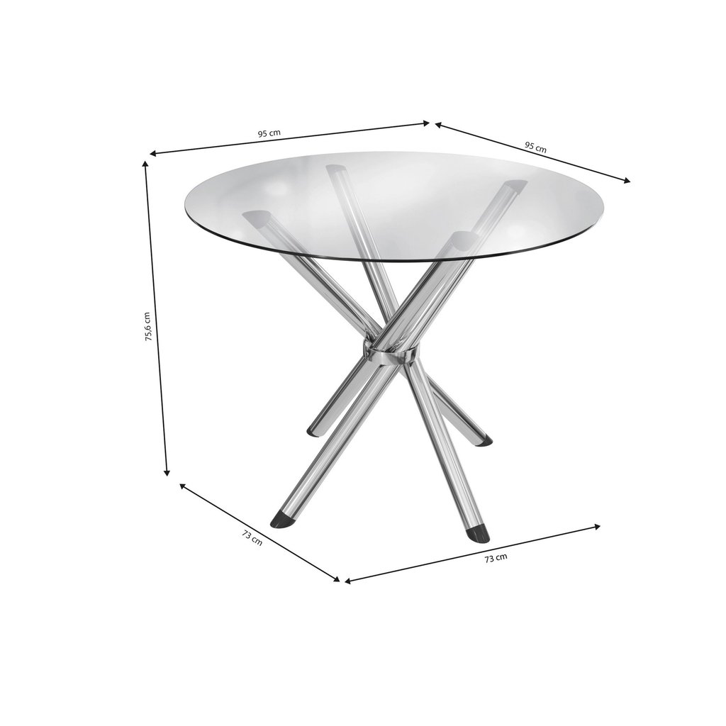 Conjunto Sala de Jantar 1 Mesa Tampo Vidro Redondo 4 Cadeiras Portugal Cromado/Branco