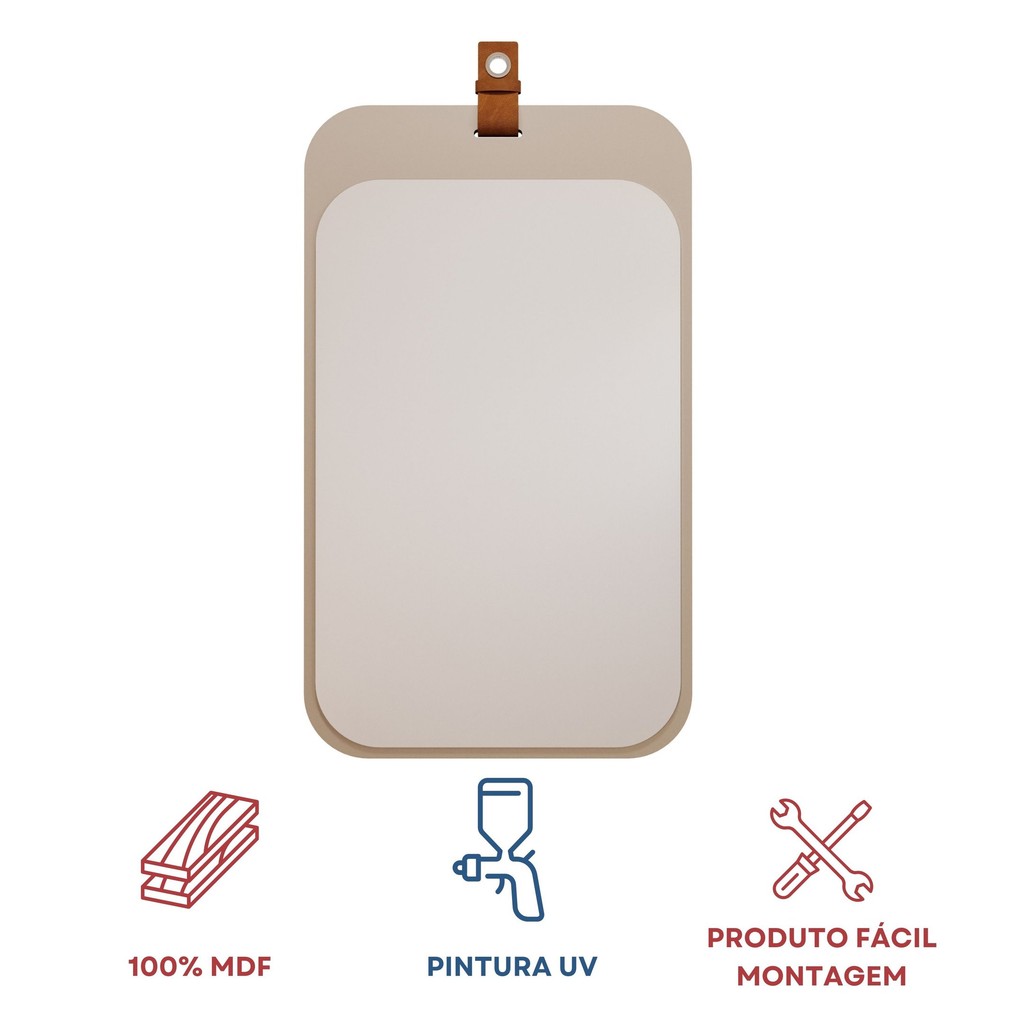 Espelheira Para Banheiro Alça em Couro Monet Espresso Móveis Cappuccino