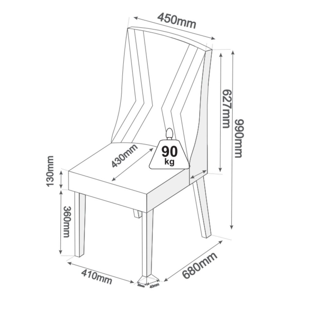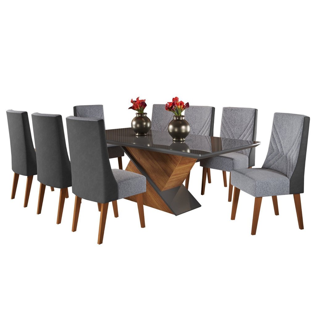 Mesa de Jantar Retangular 200x90 Cecilia com 8 Cadeiras em Madeira Maciça Topazio