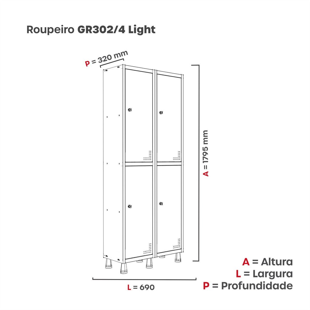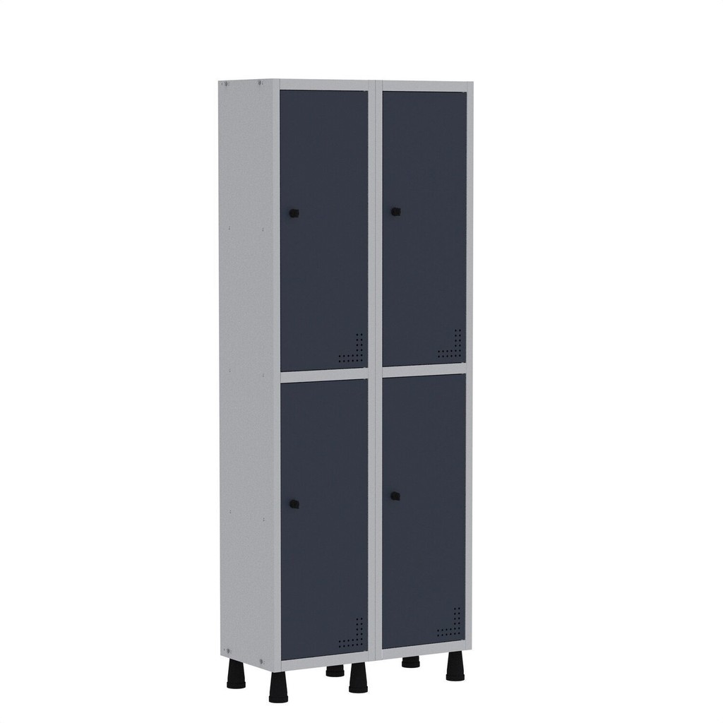 Armário Locker Guarda Volume Aço Light 4 Portas 69x179,5cm Cinza/Azul Delrei