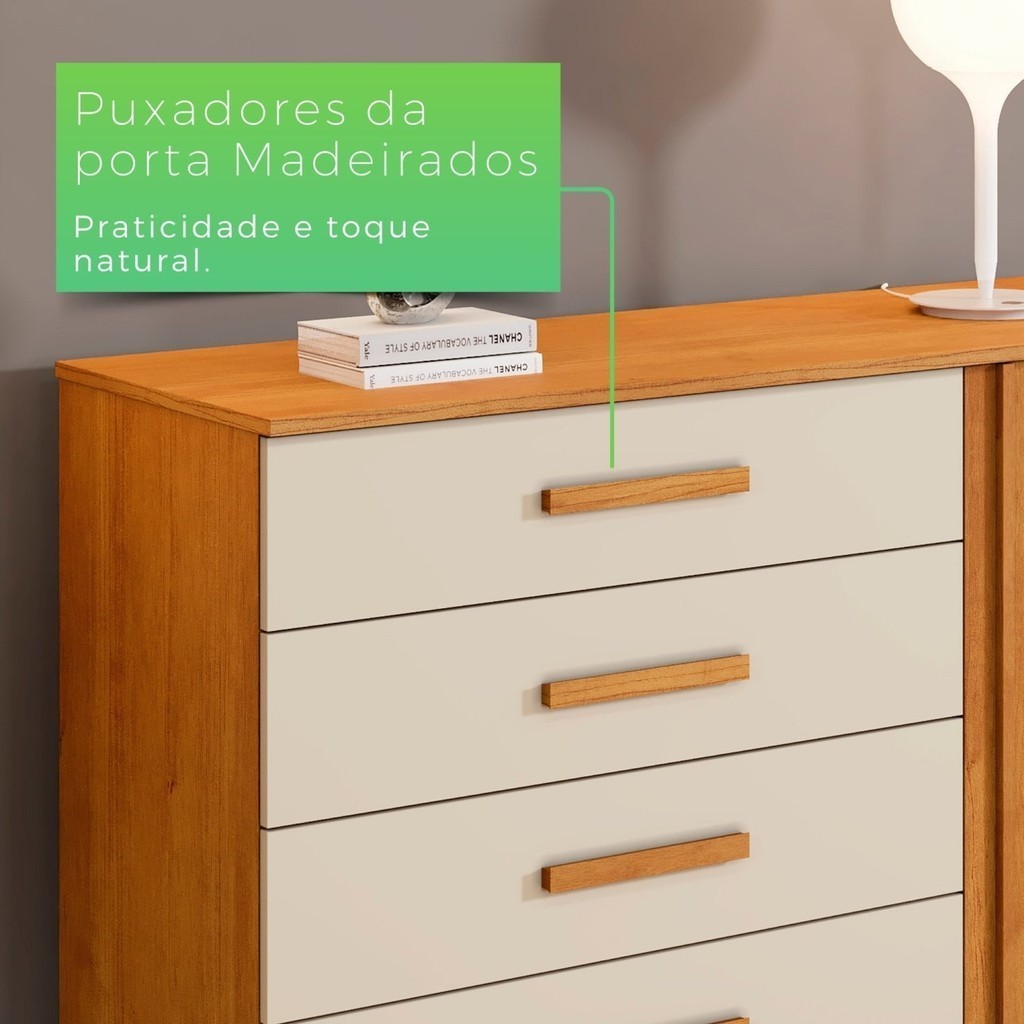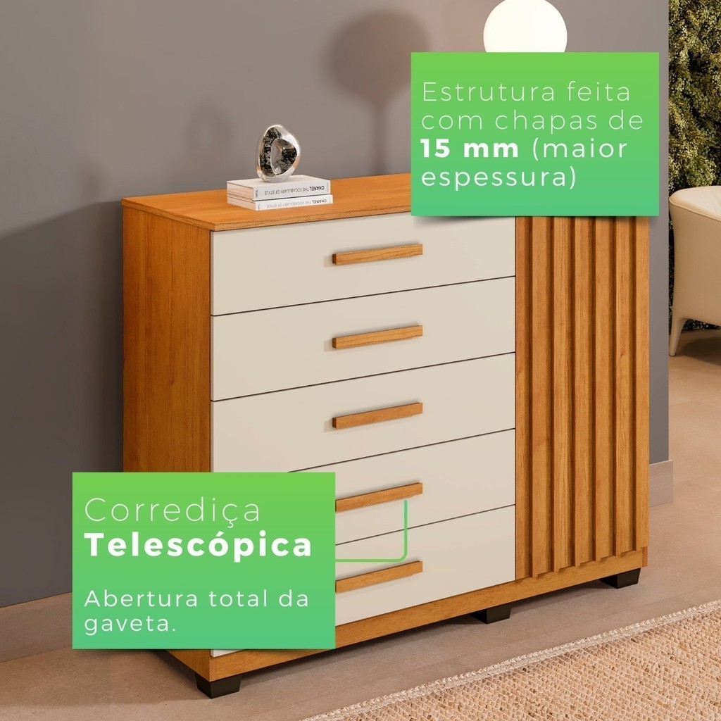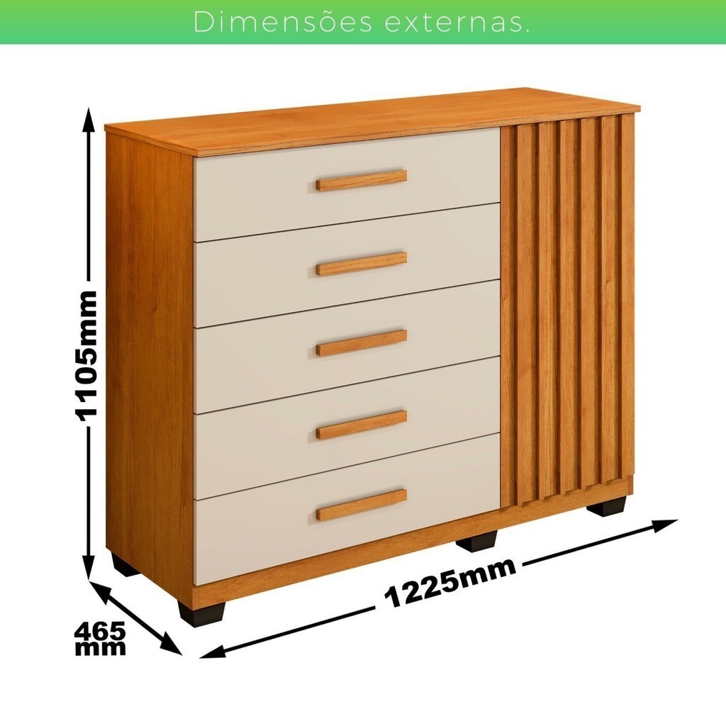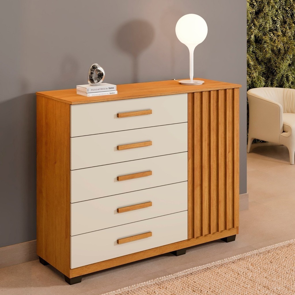 Cômoda 5 Gavetas 1 Porta 122cm Paris Off-White/Cinamomo