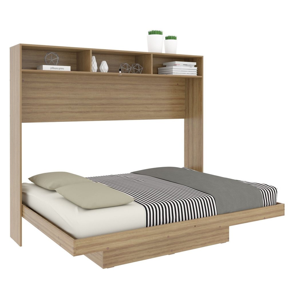 Cama Articulada Casal Horizontal com Nichos e Prateleiras Cm8043 Amendoa