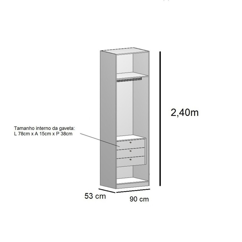 Guarda-Roupa 2 Portas com Gavetas 100% MDF Altezza Freijó/Titânio