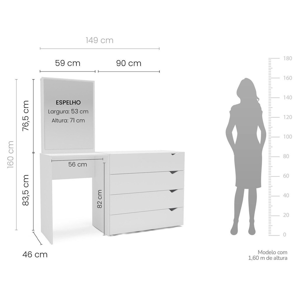 Cômoda Penteadeira 4 Gavetas com Espelho Porto Branco