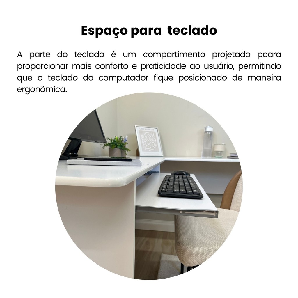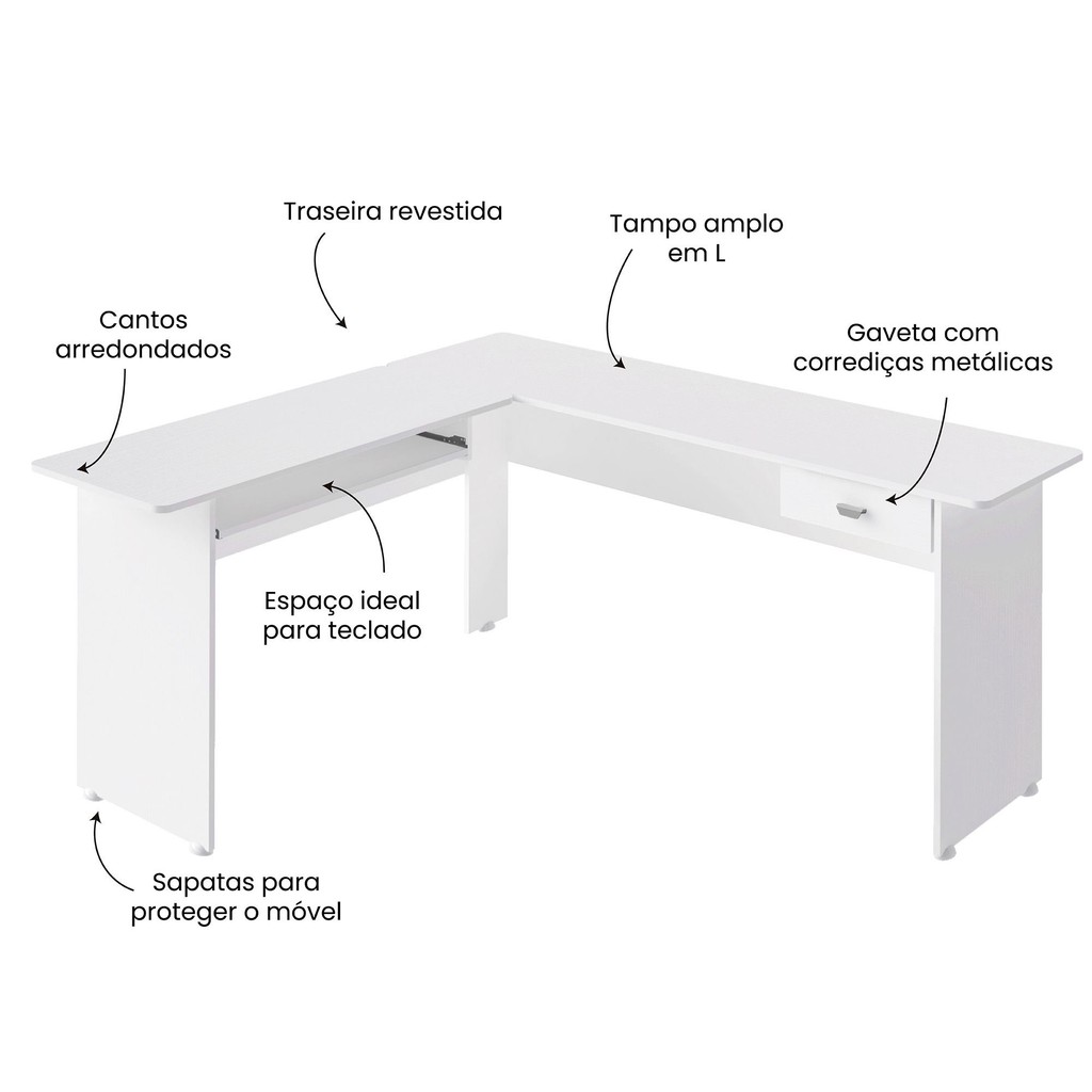 Escrivaninha Mesa Escritório em L 1 Gaveta 165cm Cannes Branco