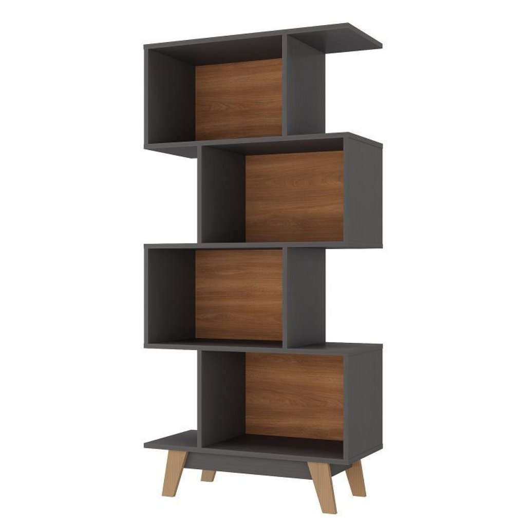 Kit 2 Estantes para Livros Caracas 4 Nichos Grafite/Nogal