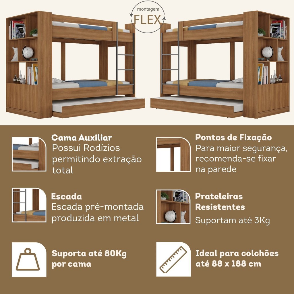 Treliche Juvenil Florence 2 Portas com Estante Nogal