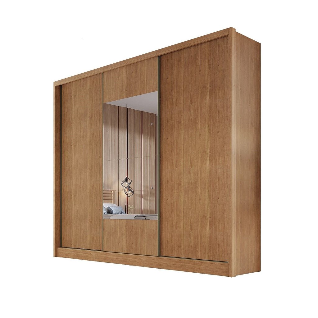 Guarda Roupa Casal em MDF com Espelho 3 Portas 6 Gavetas Montreal Cumaru