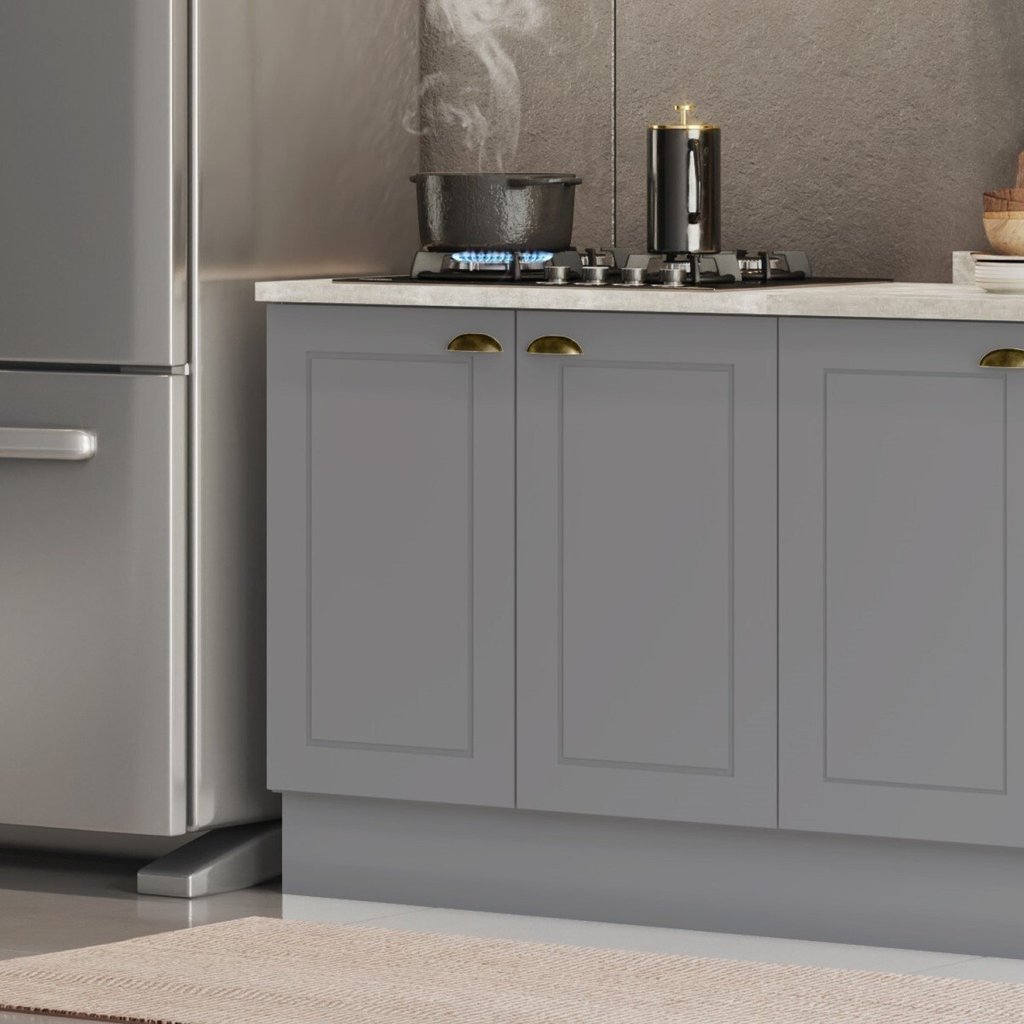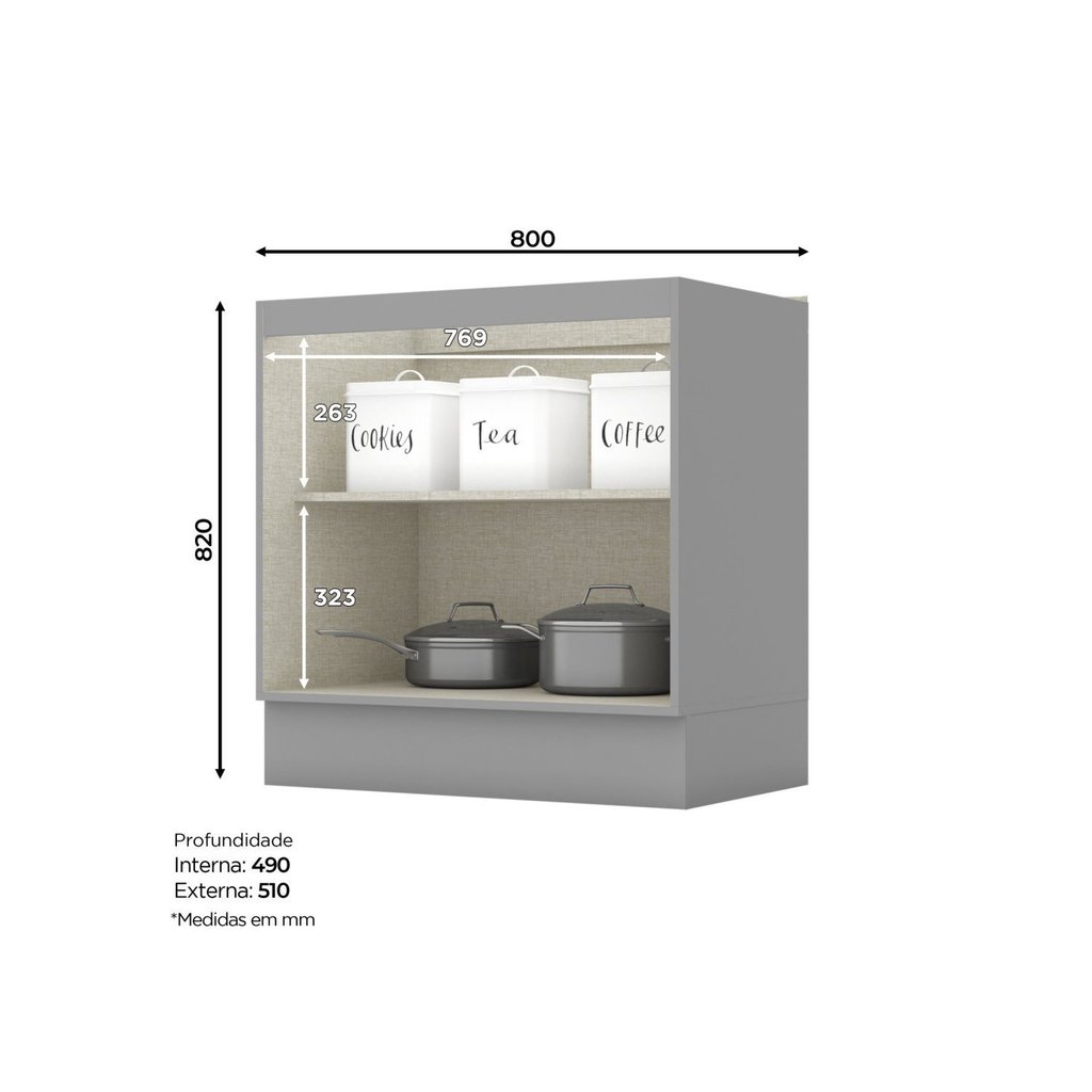Balcão para Cozinha 2 Portas 80cm com Tampo Para Cooktop Emily Cinza/Calcare